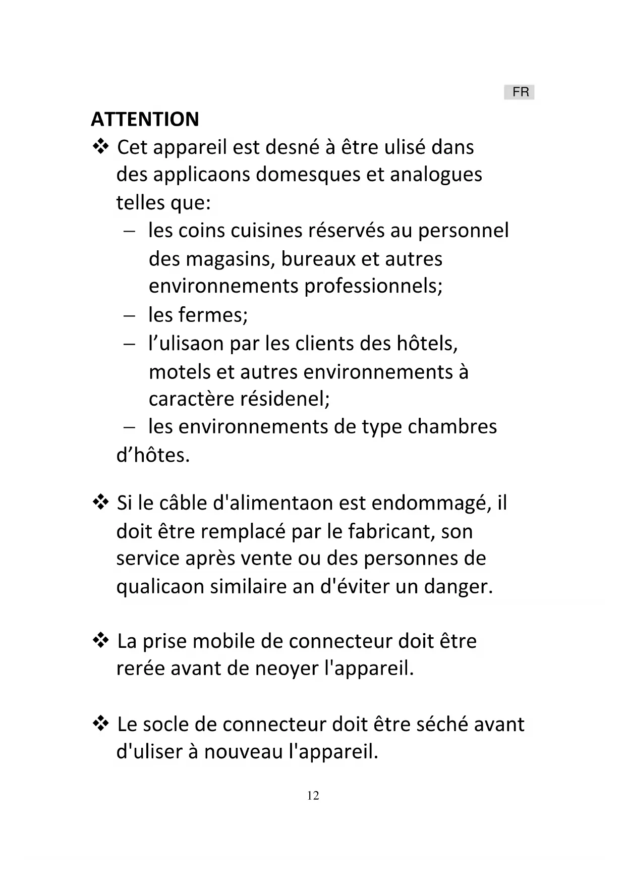Cet appareil est destiné à être utilisé dans des applications domestiques et analogues telles que:
