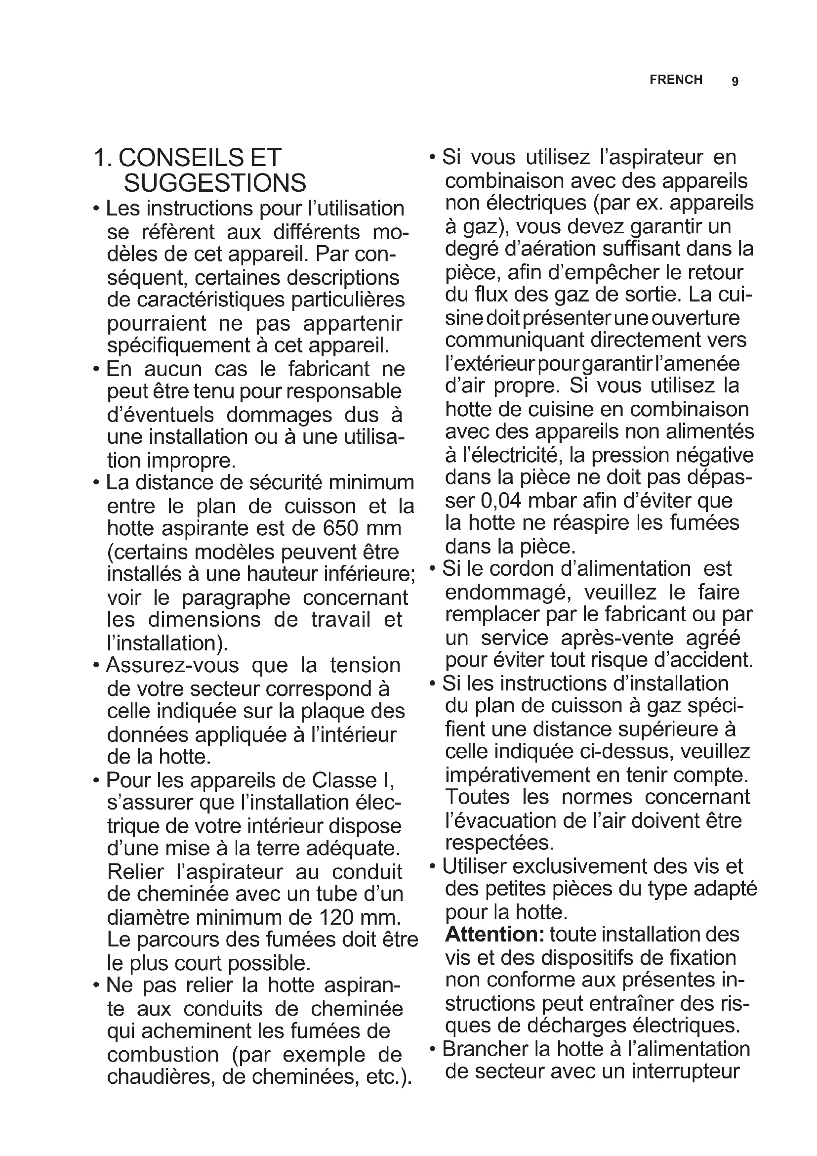 - Ne jamais laisser un feu vif allumé sous la hotte lorsque celle-ci est en fonction.