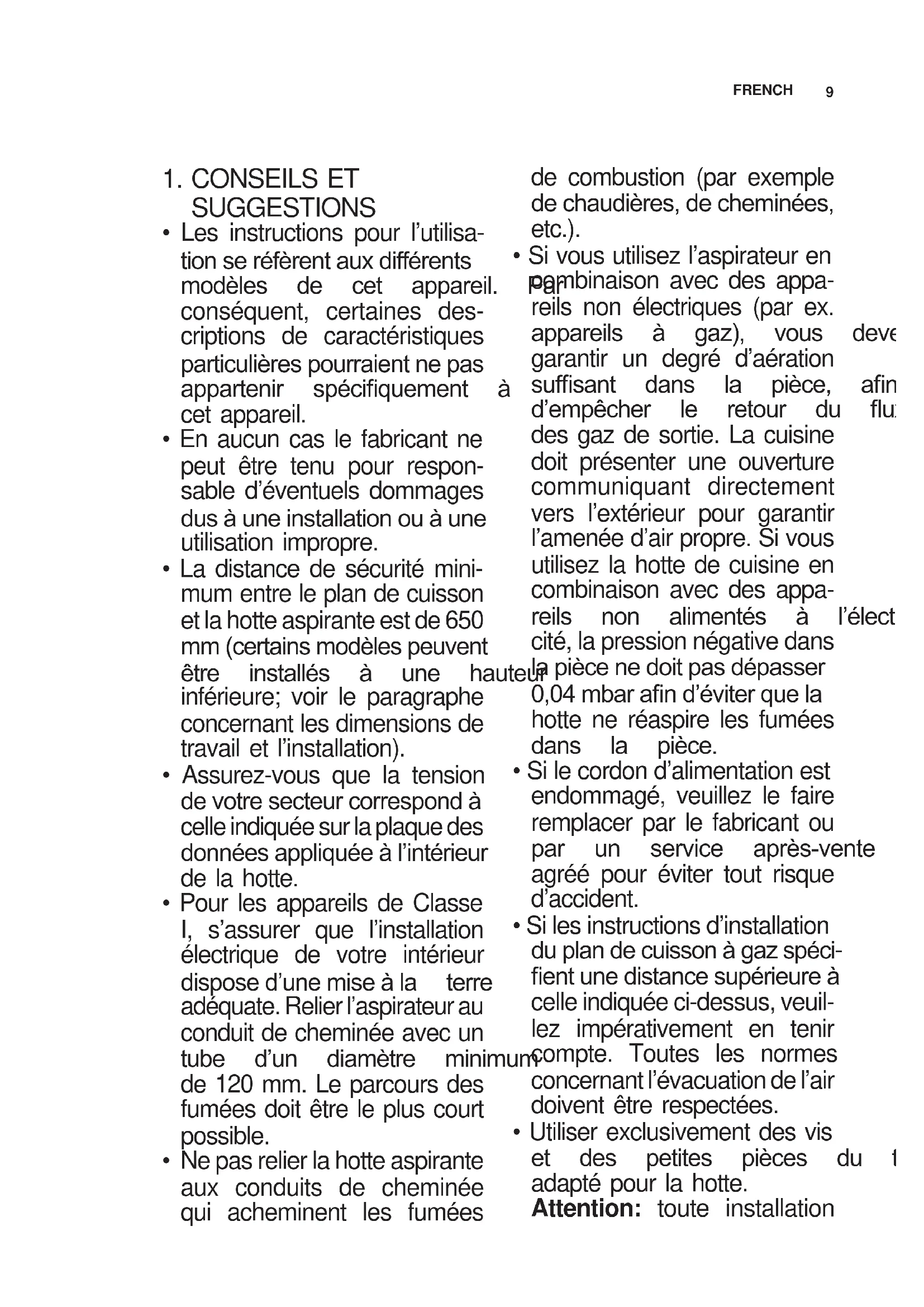 - Ne jamais laisser un feu vif allumé sous la hotte lorsque celle-ci est en fonction.