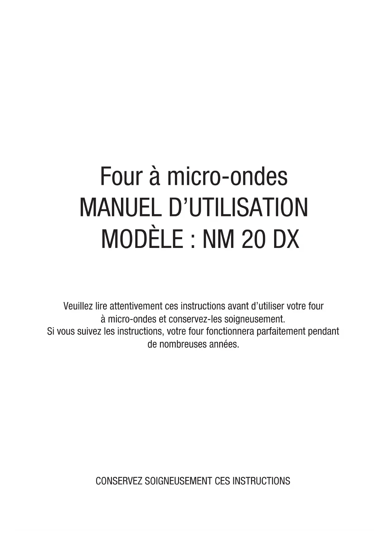 Veuillez lire attentivement ces instructions avant d’utiliser votre four à micro-ondes et conservez-les soigneusement. Si vous suivez les instructions, votre four fonctionnera parfaitement pendant de nombreuses années.