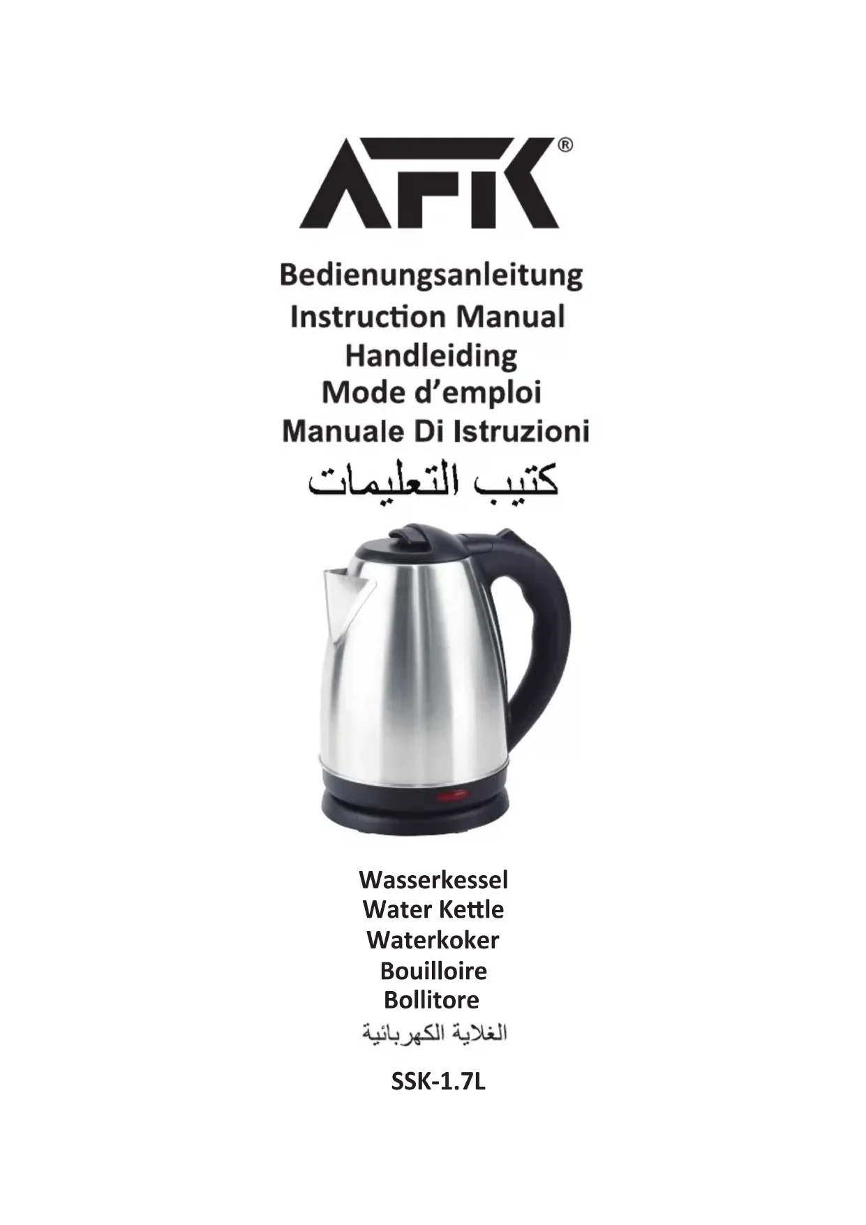 SSK1.7L - Bouilloire électrique AFK - Notice d'utilisation et mode d'emploi gratuit