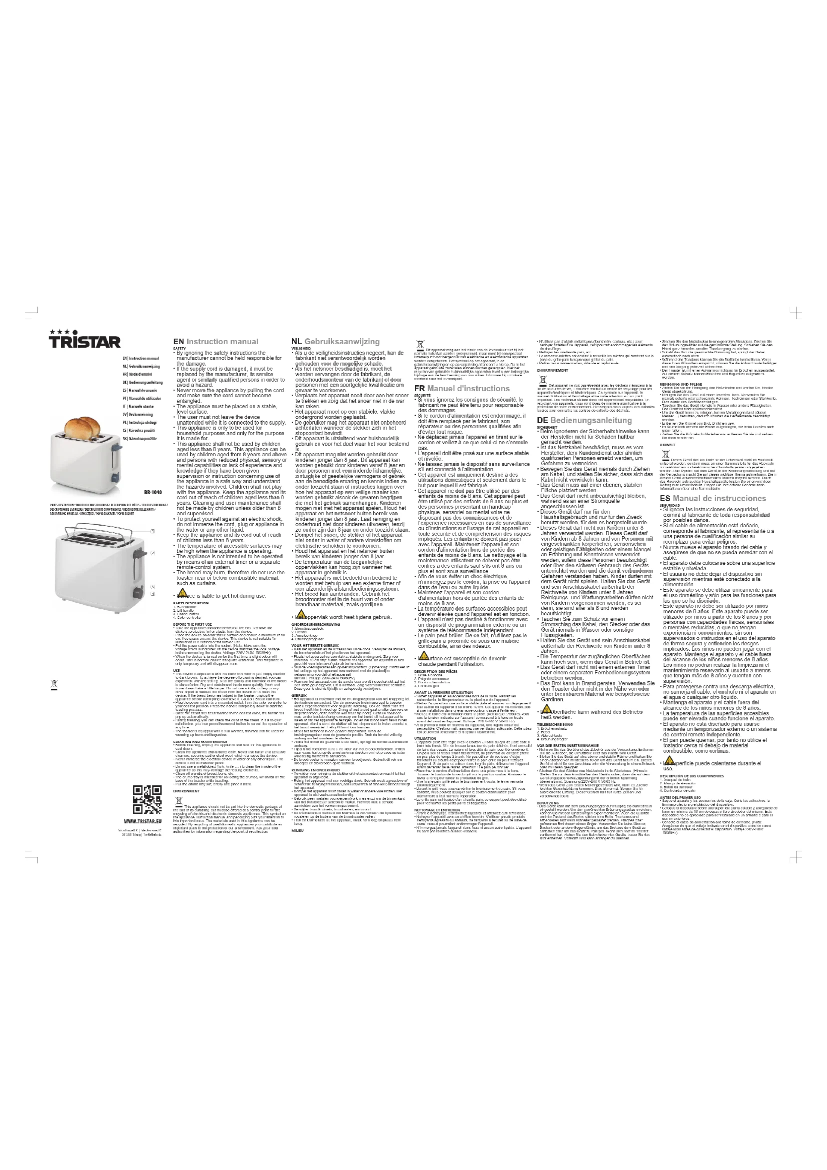 Retrouvez gratuitement la notice de l'appareil BR1040 TRISTAR au format PDF.
