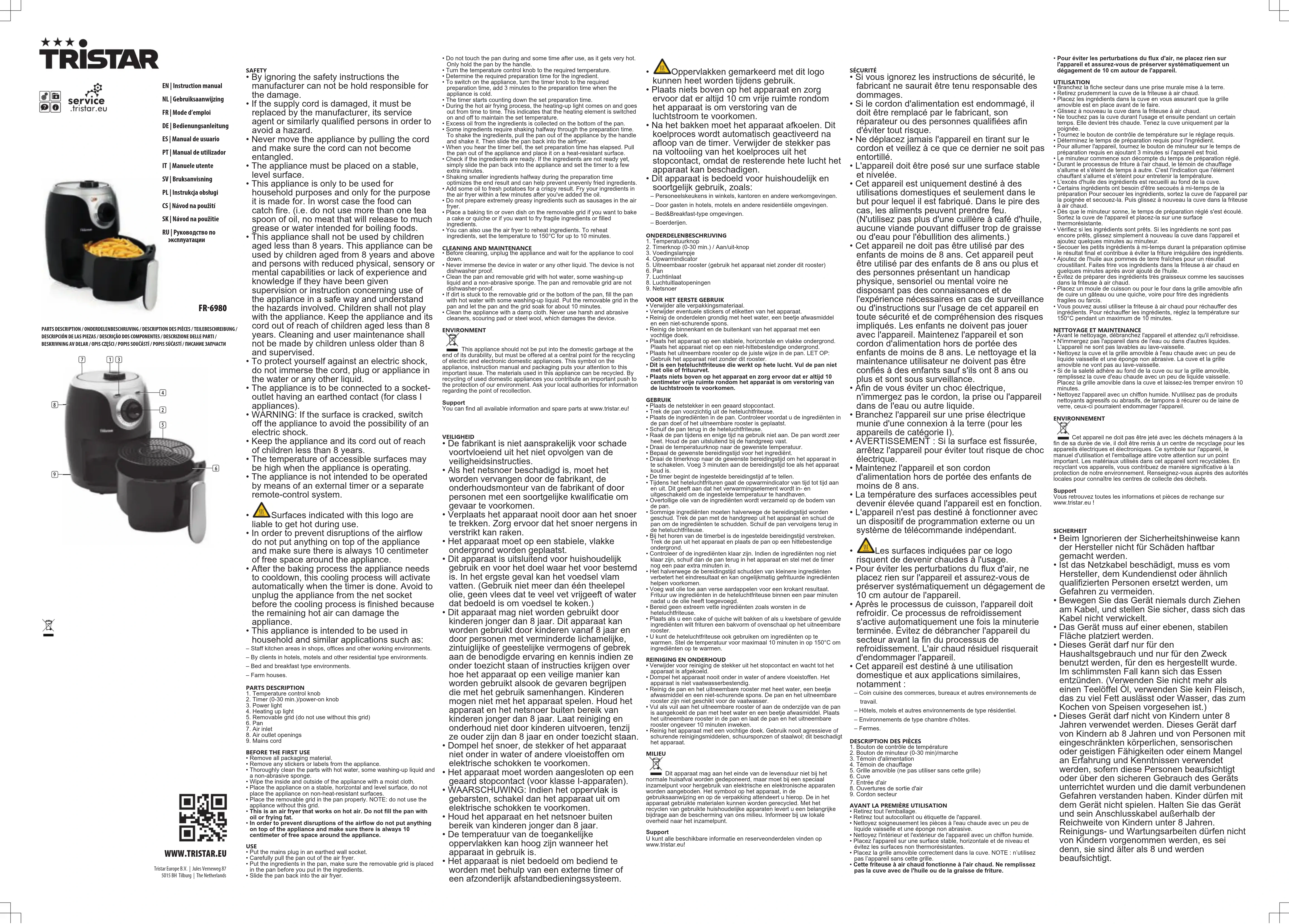 Retrouvez gratuitement la notice de l'appareil FR6980 TRISTAR au format PDF.