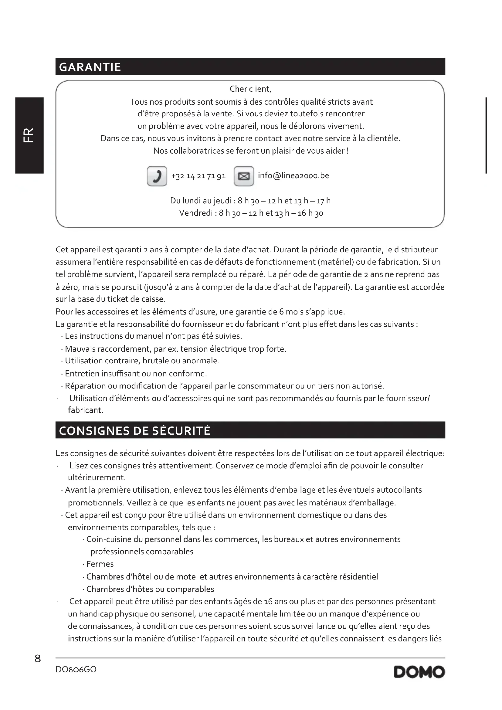 Retrouvez gratuitement la notice de l'appareil DO806GO DOMO au format PDF.