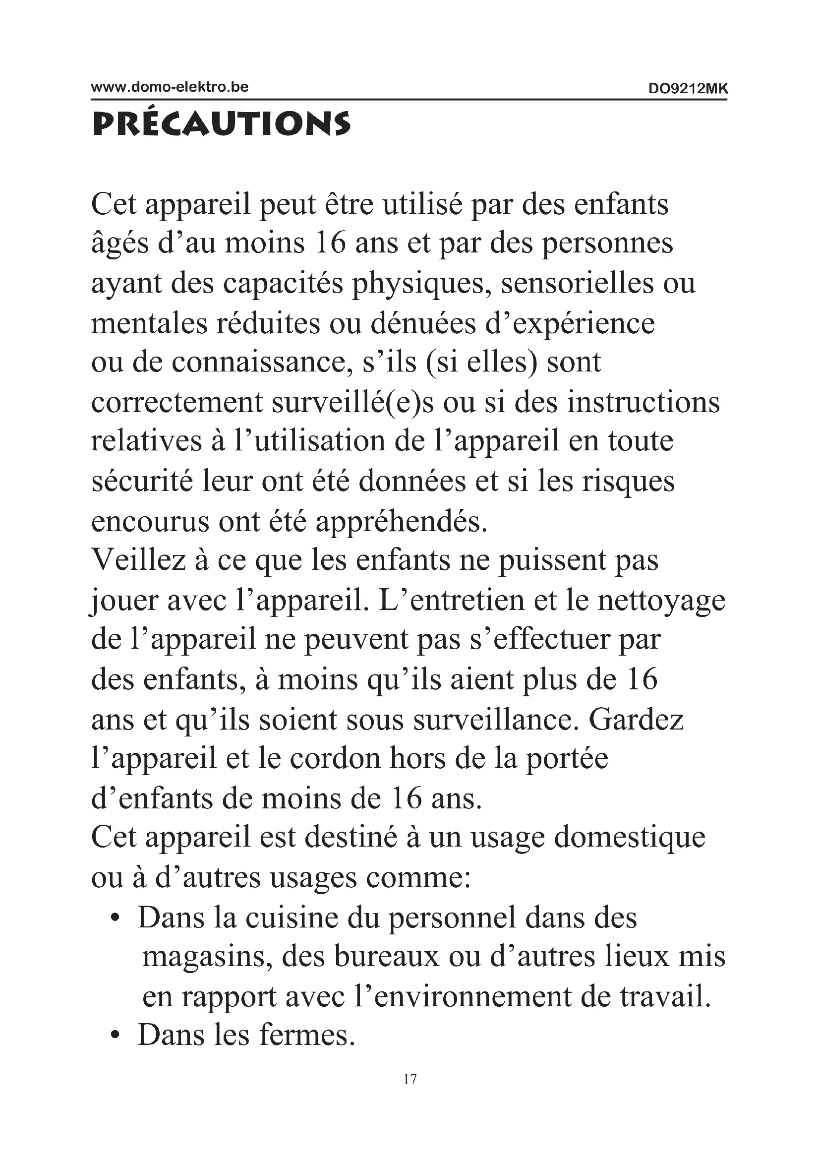 MODE D'EMPLOI DO9212MK DOMO