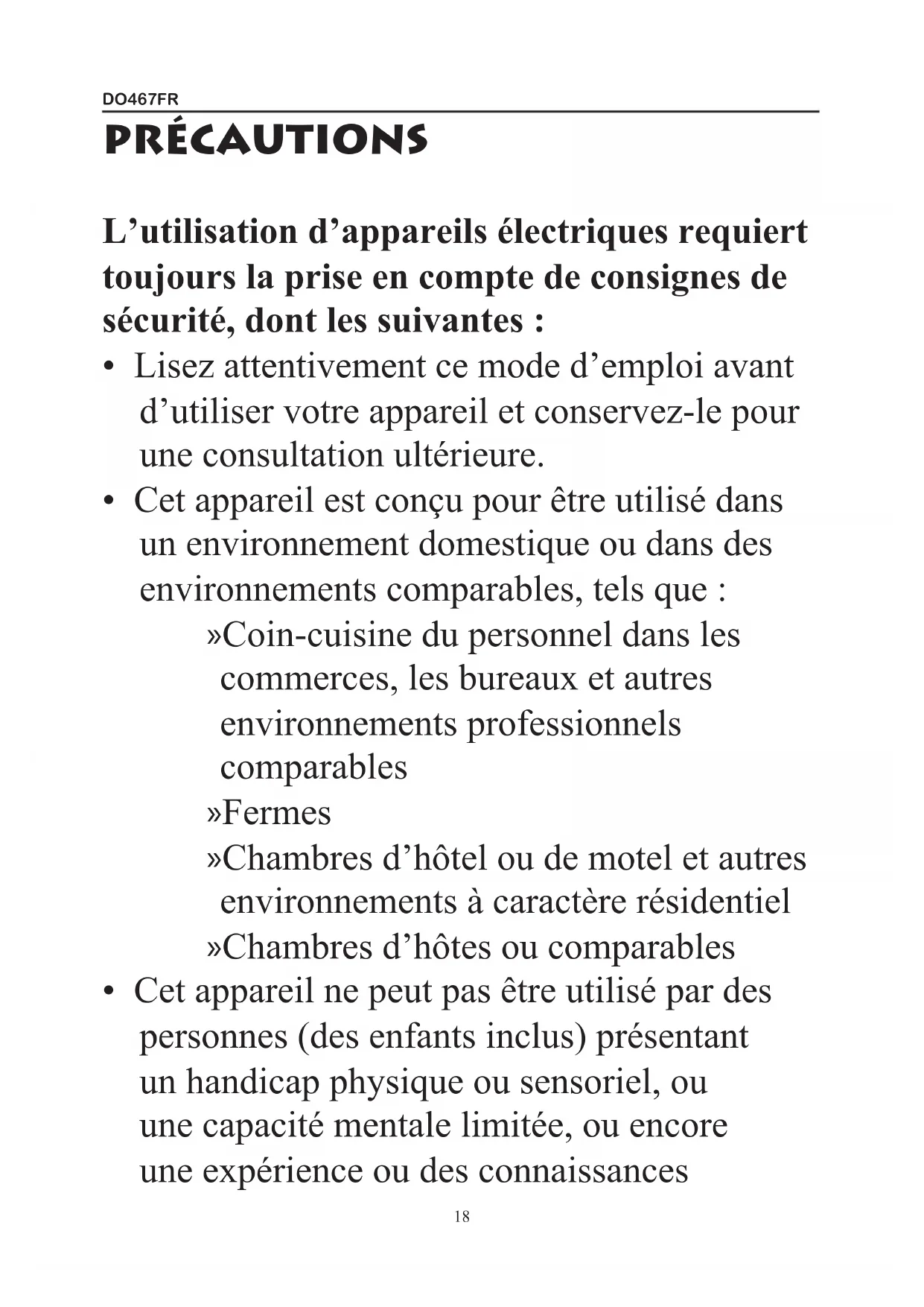 Retrouvez gratuitement la notice de l'appareil DO467FR DOMO au format PDF.