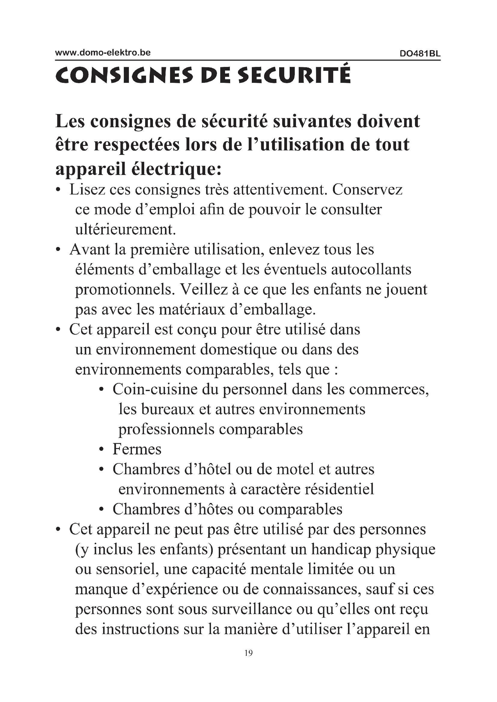 MODE D'EMPLOI DO481BL DOMO