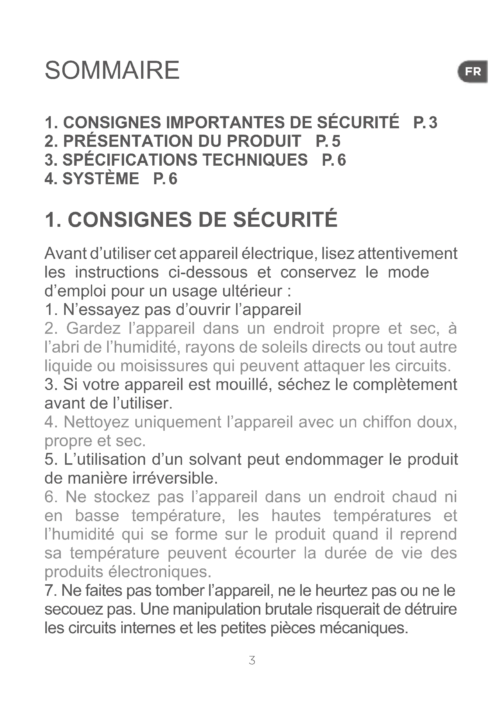 1. N’essayez pas d’ouvrir l’appareil