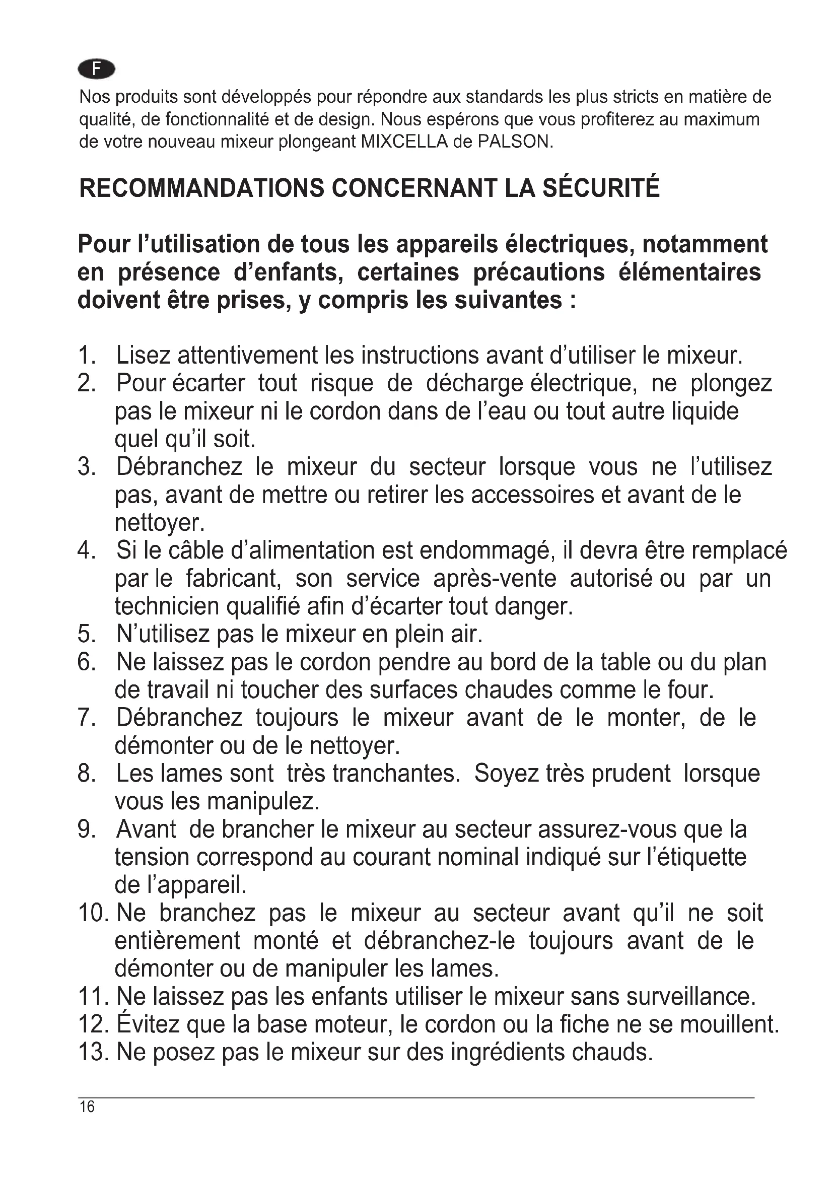 Retrouvez gratuitement la notice de l'appareil Mixcella PALSON au format PDF.