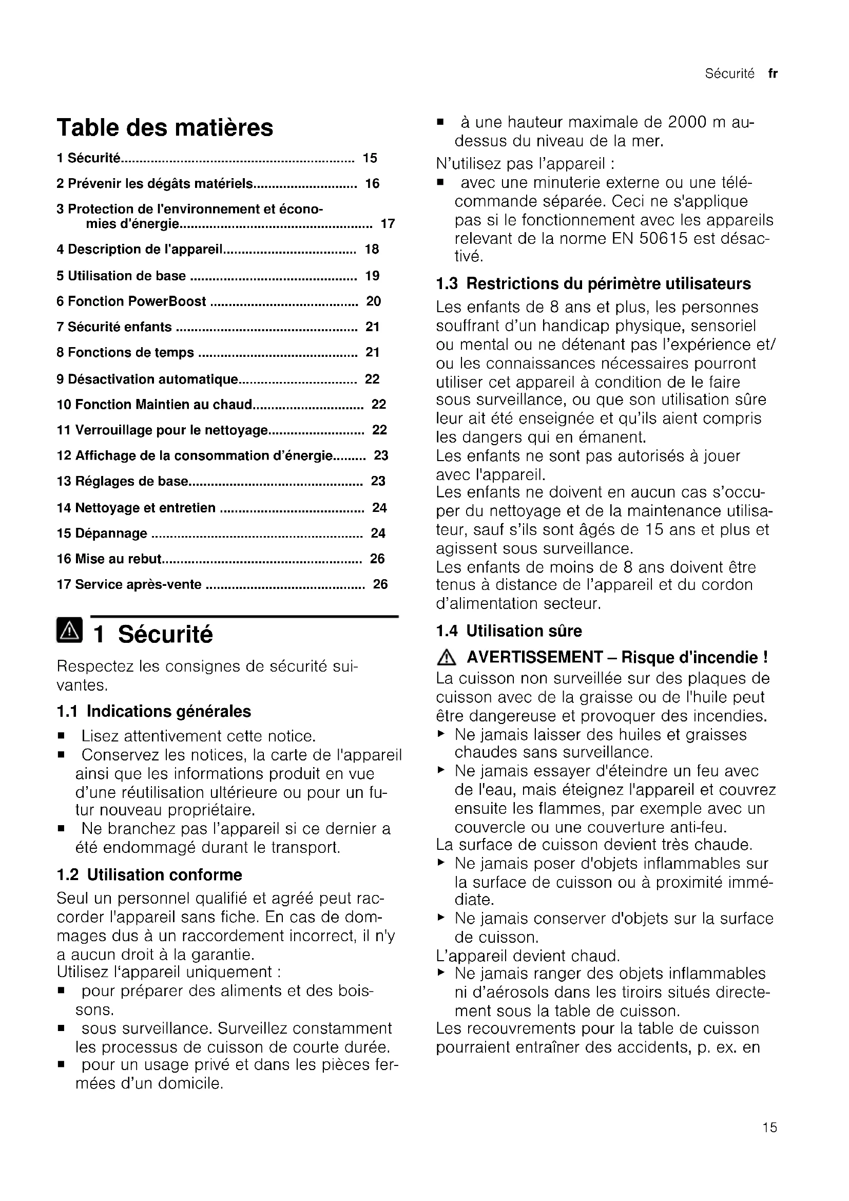 - Table des matières 1 Sécurité p. 15