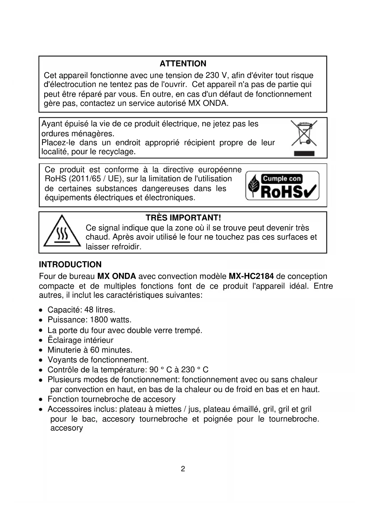 MODE D'EMPLOI MXHC2184 Mx Onda