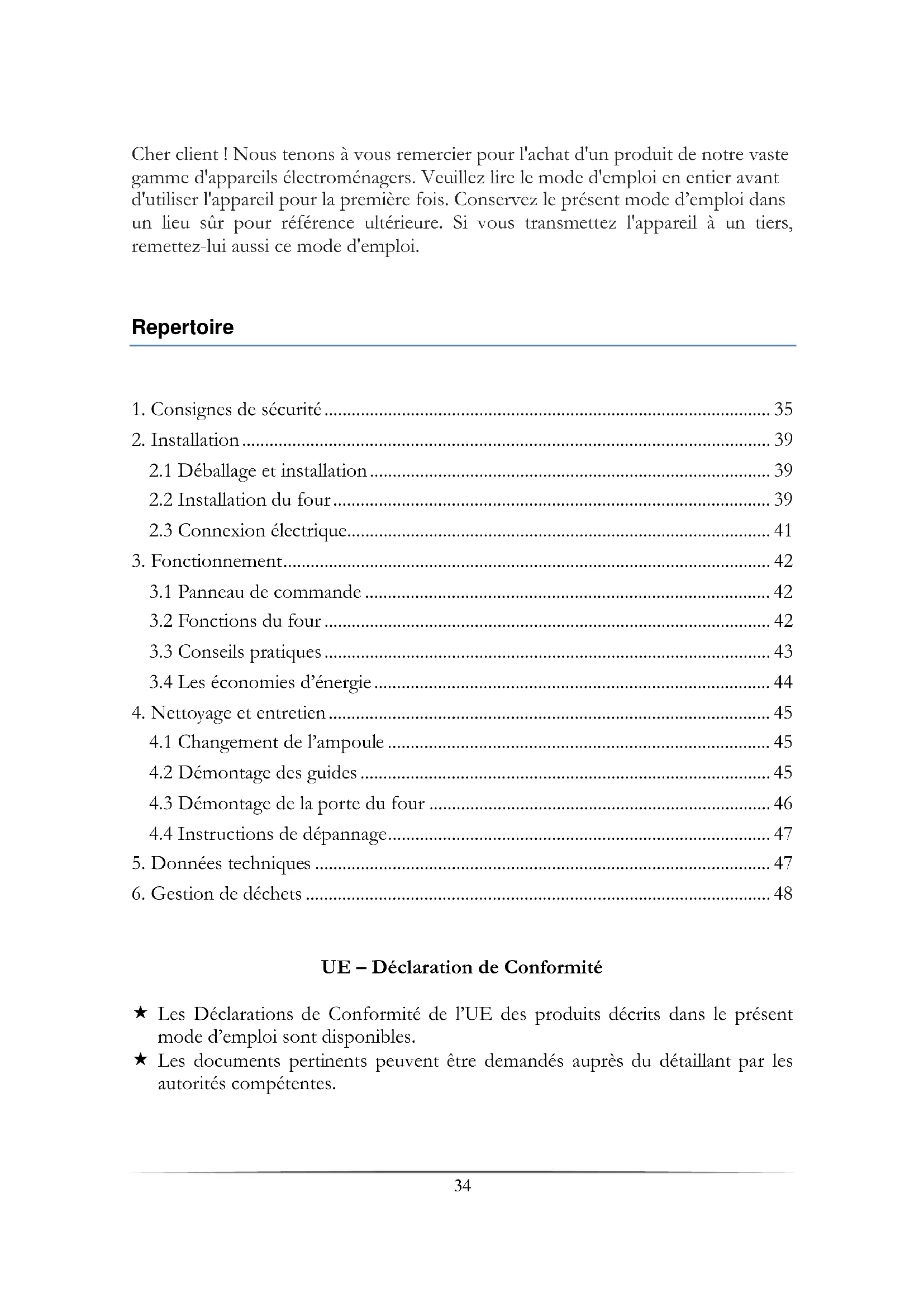 - Consignes de sécurité 35