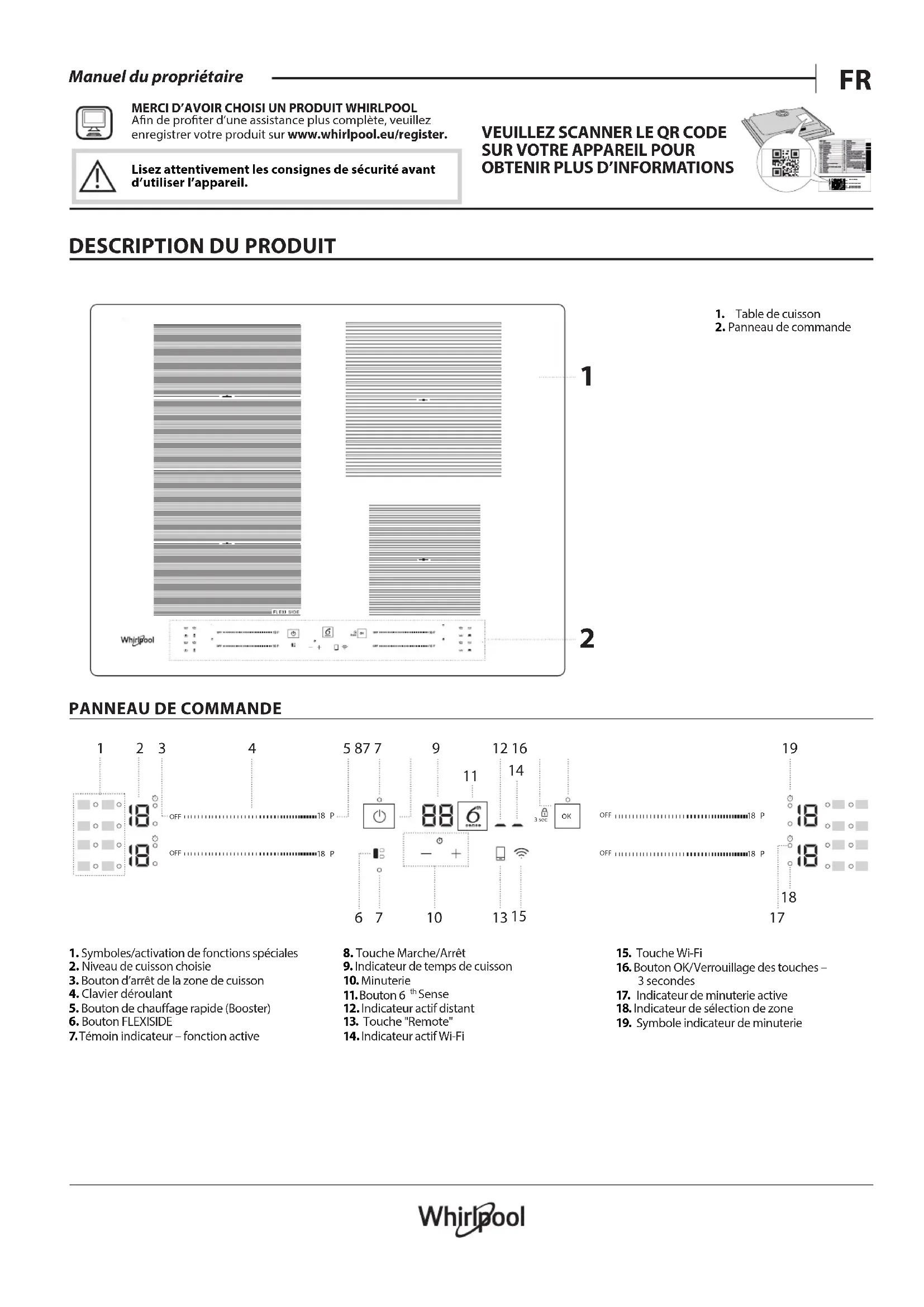 MERCI D’AVOIR CHOISI UN PRODUIT WHIRLPOOL An de proter d’une assistance plus complète, veuillez enregistrer votre produit sur www.whirlpool.eu/register.