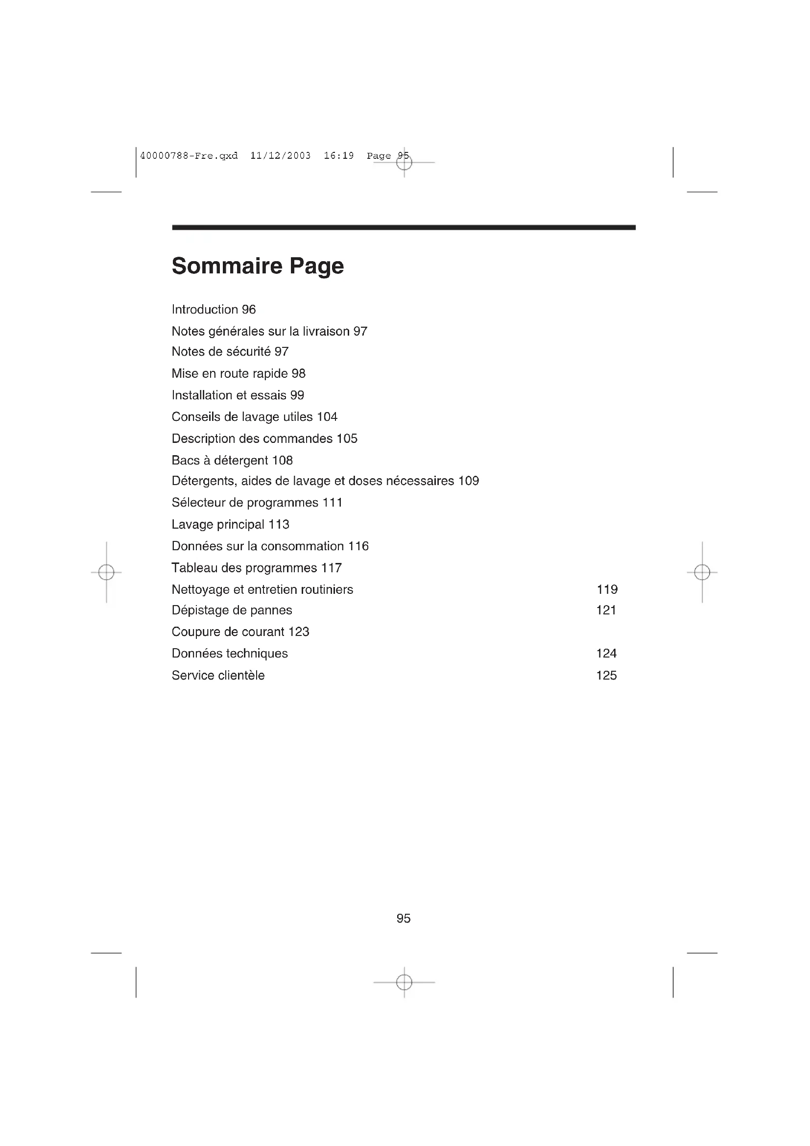 40000788-Fre.qxd 11/12/2003 16:19 Page 95Introduction Veuillez lire ce mode d’emploi avec soin et assurez-vous de le respecter lors de l’utilisation de la machine. Ce livret contient des instructions importantes sur la sécurité d’utilisation, l’installation et l’entretien de la machine, ainsi que des conseils utiles pour obtenir les meilleurs résultats possibles lors de son utilisation. Conservez toute la documentation dans un endroit sûr pour pouvoir vous y reporter à une date ultérieure ou la transmettre aux prochains propriétaires.