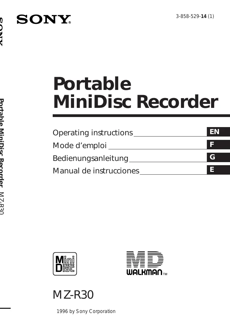 Téléchargez la notice de votre Lecteur MiniDisc au format PDF gratuitement ! Retrouvez votre notice MZ-R30 - SONY et reprennez votre appareil électronique en main. Sur cette page sont publiés tous les documents nécessaires à l'utilisation de votre appareil MZ-R30 de la marque SONY.