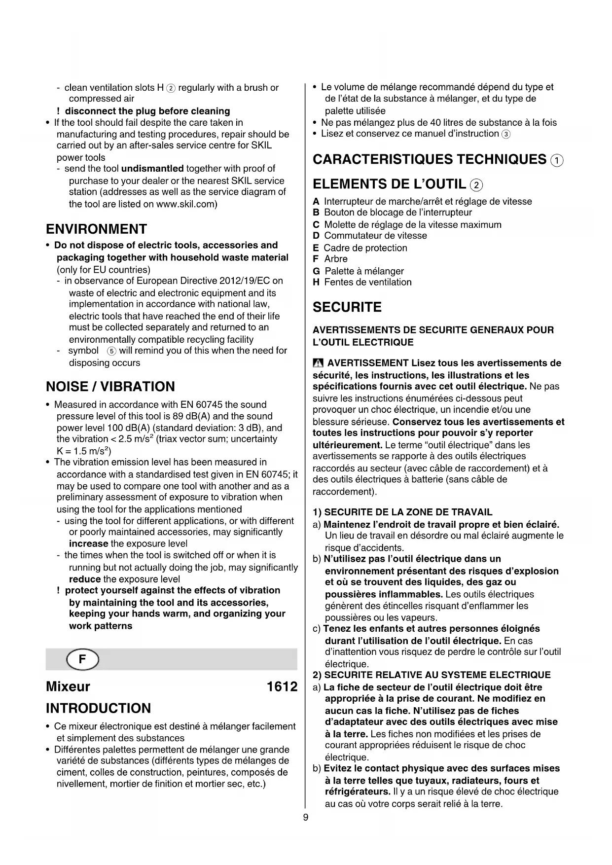 - SKIL ne peut se porter garant du bon fonctionnement de cet outil que s’il a été utilisé avec les accessoires appropriés en vente chez votre distributeur SKIL