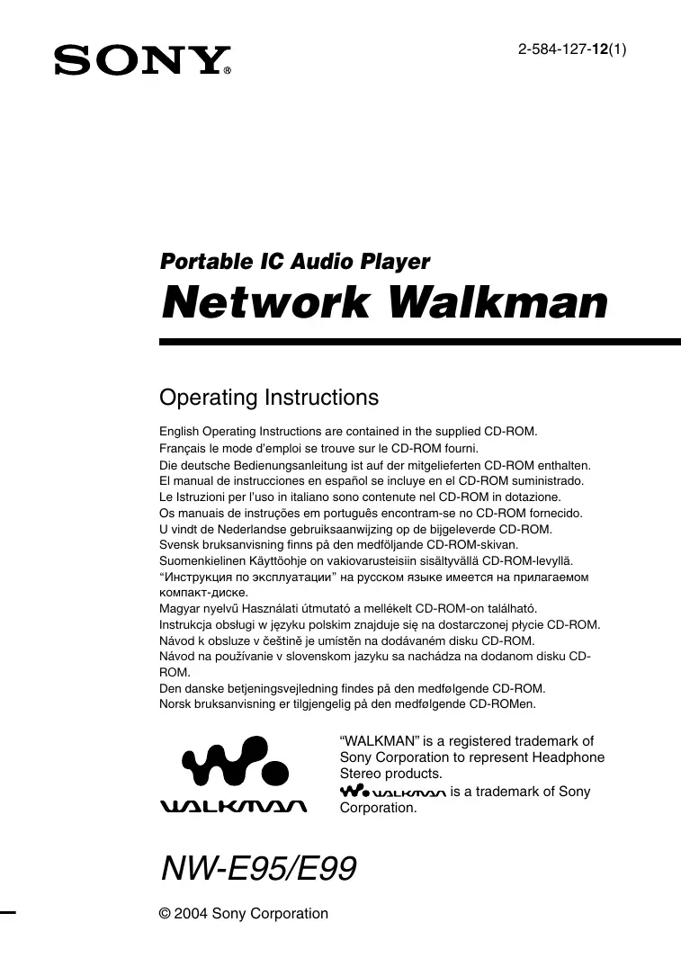Retrouvez gratuitement la notice de l'appareil NW-E99 SONY au format PDF.