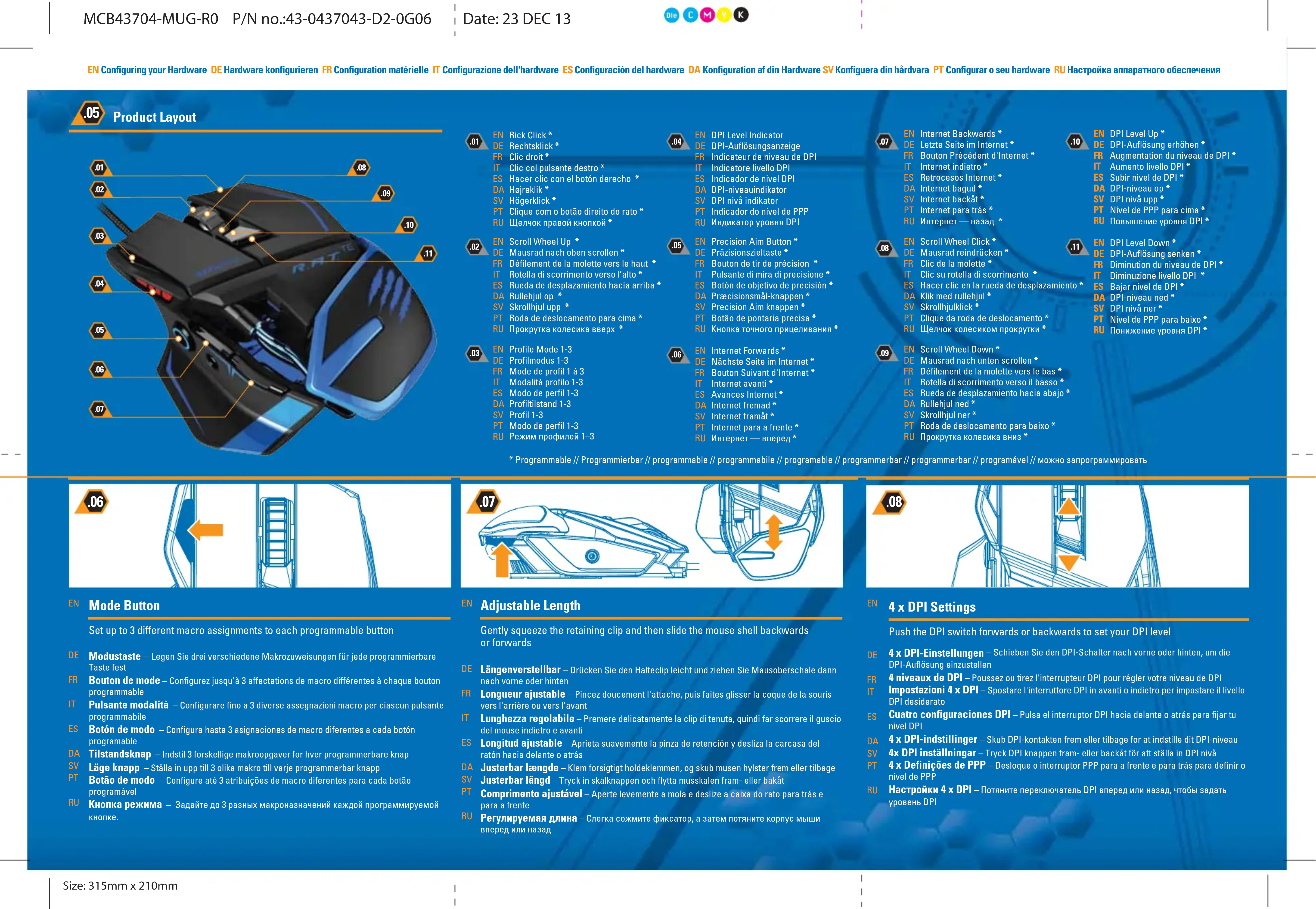 , et le logo Mad Catz sont des marques de commerce ou des marques déposées de Mad Catz Interactive, Inc., de ses filiales et sociétés affiliées. Couvert par le Brevet Améri¬cain No. 6,157,370. La forme et le design de ce produit est un caractéristique de la marque Mad Catz Interactive, Inc., de ses filiales et sociétés affiliées. Microsoft, Windows, et les logos Windows sont des marques de commerce du groupe Microsoft. Mac et le logo Mac sont des marques de commerce d’Apple Inc., enregistré aux États-Unis et dans d'autres pays. Ce produit n’est ni garanti, ni homologué, ni approuvé par Microsoft ou Apple Inc. Tous les autres noms et images de produits sont des marques de commerce ou des marques déposées de leurs propriétaires respectifs. Fabriqué en Chine. Tous droits réservés. L’aspect, les fonctionnalités et les spécifications du produit peuvent changer sans préavis.Veuillez conserver cette notice pour référence ultérieure.Mad Catz is a publicly traded company on the TSX/NYSE MKT, symbol MCZ.Mad Catz ist ein börsennotiertes Unternehmen (TSX, NYSE MKT: MCZ).Les actions de Mad Catz sont cotées en bourse sur le TSX/NYSE MKT sous le symbole MCZ D20-MCB43704 EN Configuring your software DE Software konfigurieren FR Configuration logicielle IT Configurazione del software ES Configuración del software DA Konfiguration af din software SV Konfiguera din mjukvara PT Configurar o seu software RU Настройка программного обеспечения