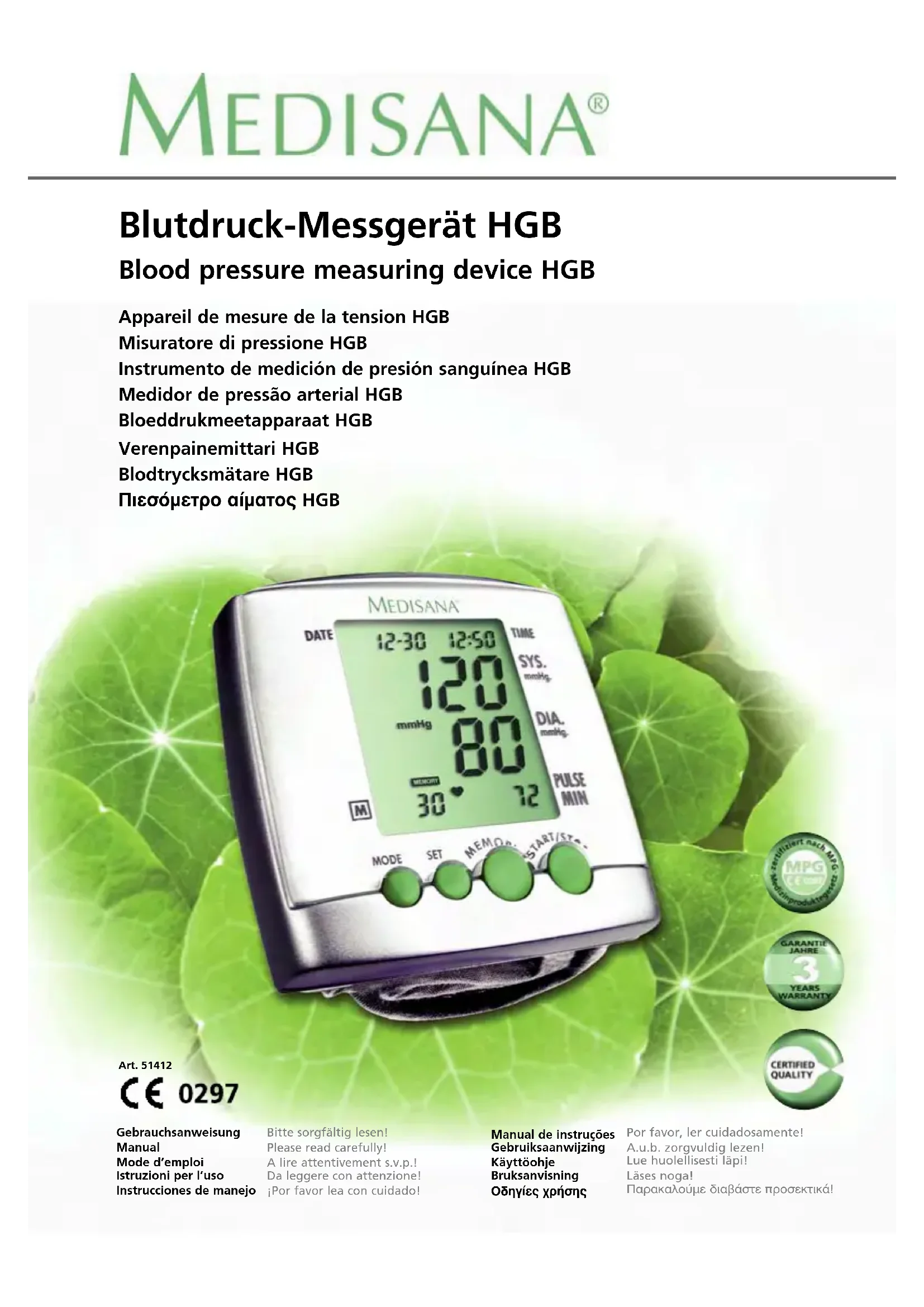 HGB - Tensiomètre MEDISANA - Notice d'utilisation et mode d'emploi gratuit