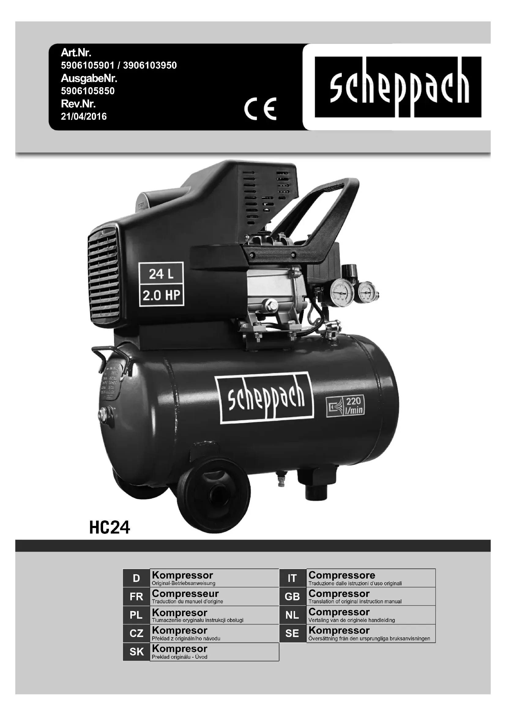 HC24 - Compresseur SCHEPPACH - Notice d'utilisation et mode d'emploi gratuit