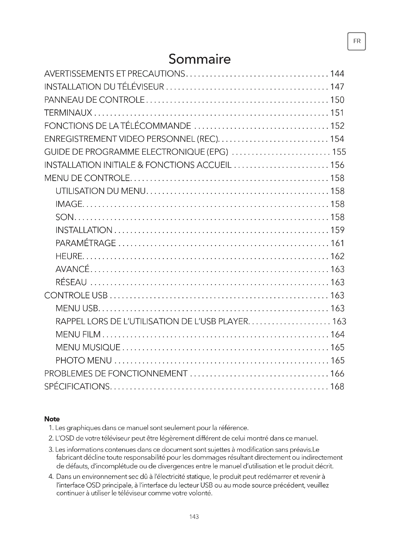 l’interface OSD principale, à l’interface du lecteur USB ou au mode source précédent, veuillez continuer à utiliser le téléviseur comme votre volonté. Sommaire