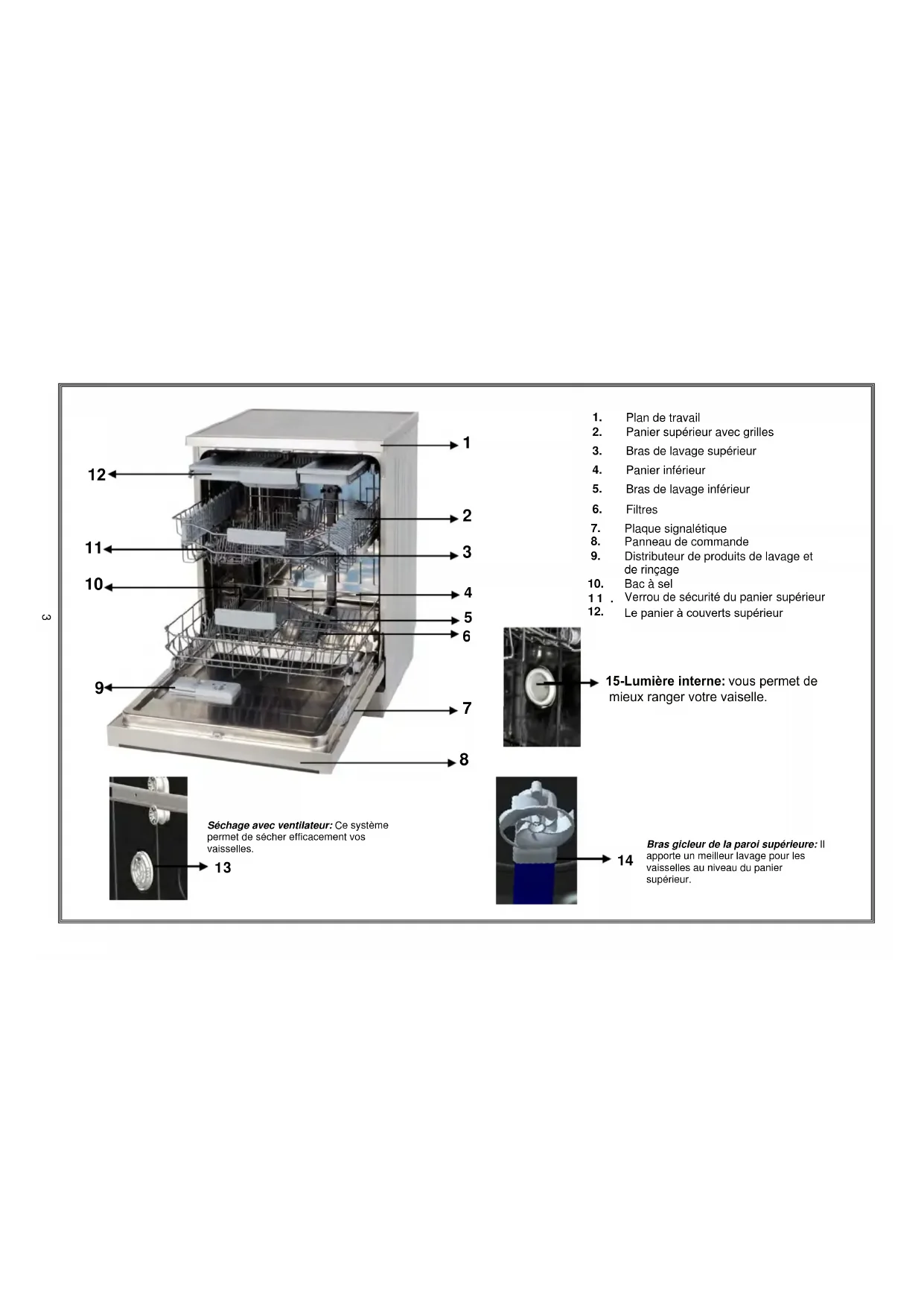 15-Lumière interne: vous permet de mieux ranger votre vaiselle.