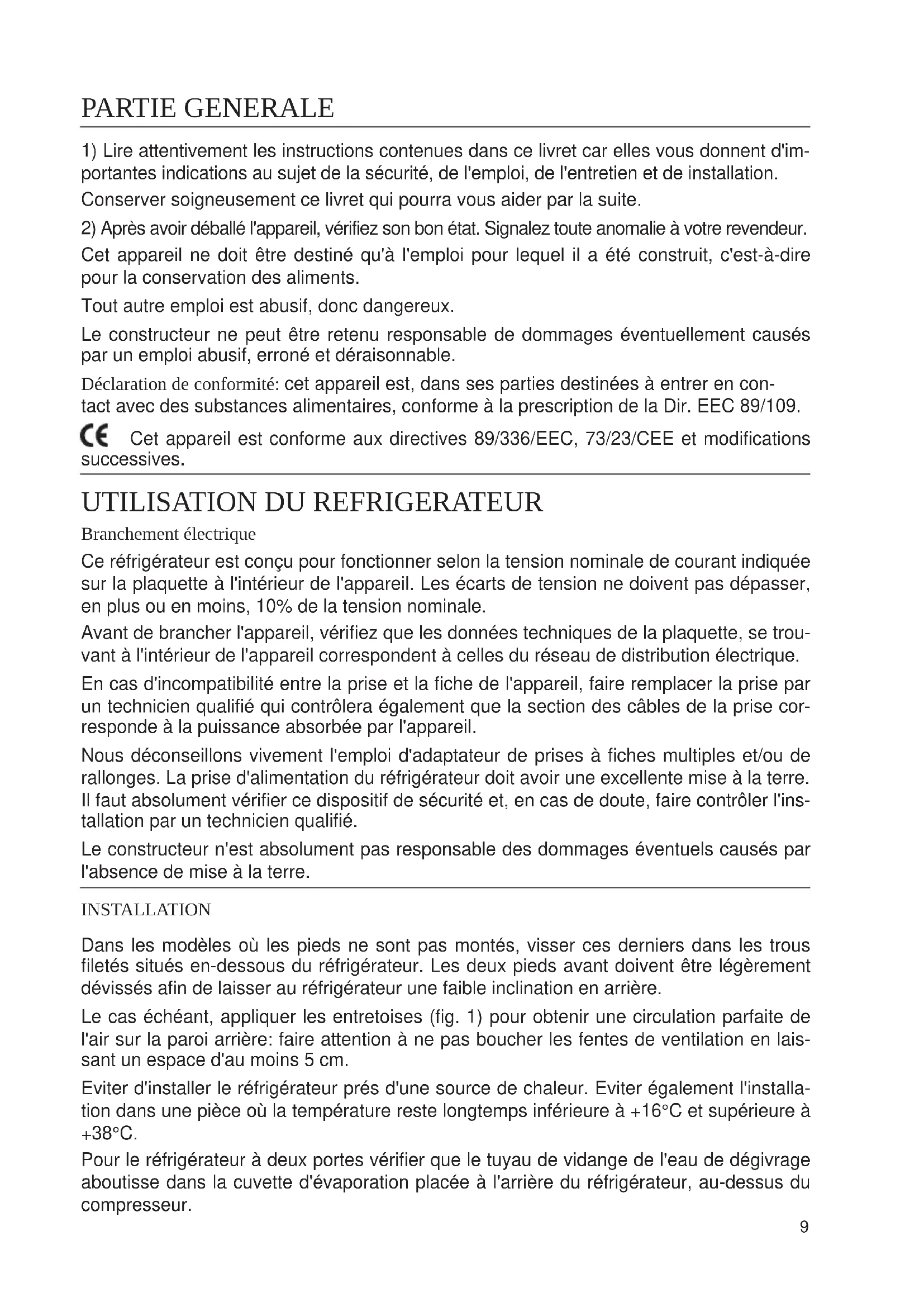 Eviter d'installer le réfrigerateur près d'une source de chaleur. Eviter également l'installation dans une pièce où la température reste longtemps inférieure à +16°C et supérieure à +38°C.