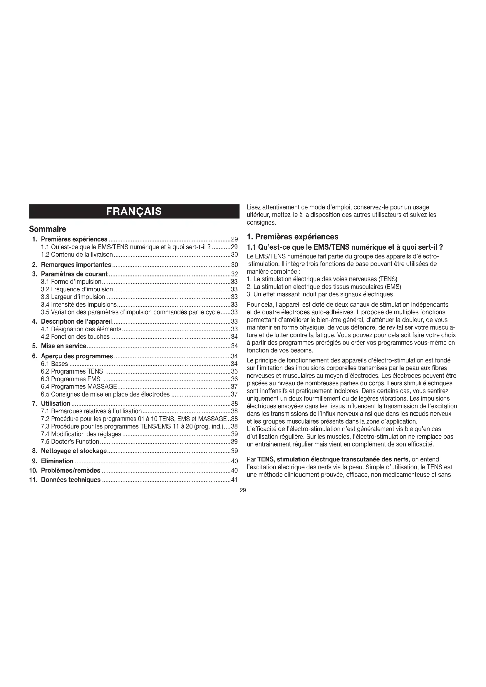 Mode d’emploi Appareil EMS/TENS numérique ..............(29 – 41)