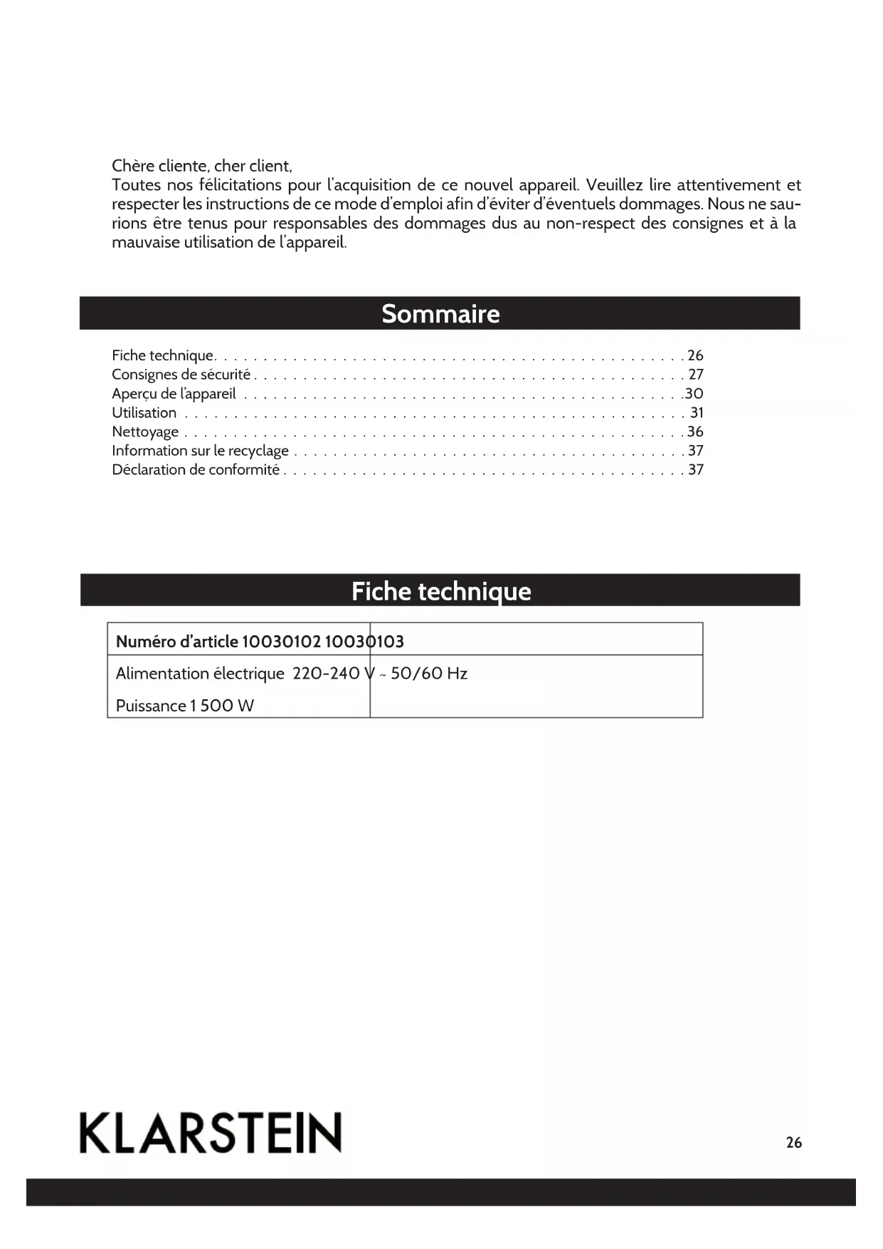 Retrouvez gratuitement la notice de l'appareil Mini 10030103 Klarstein au format PDF.