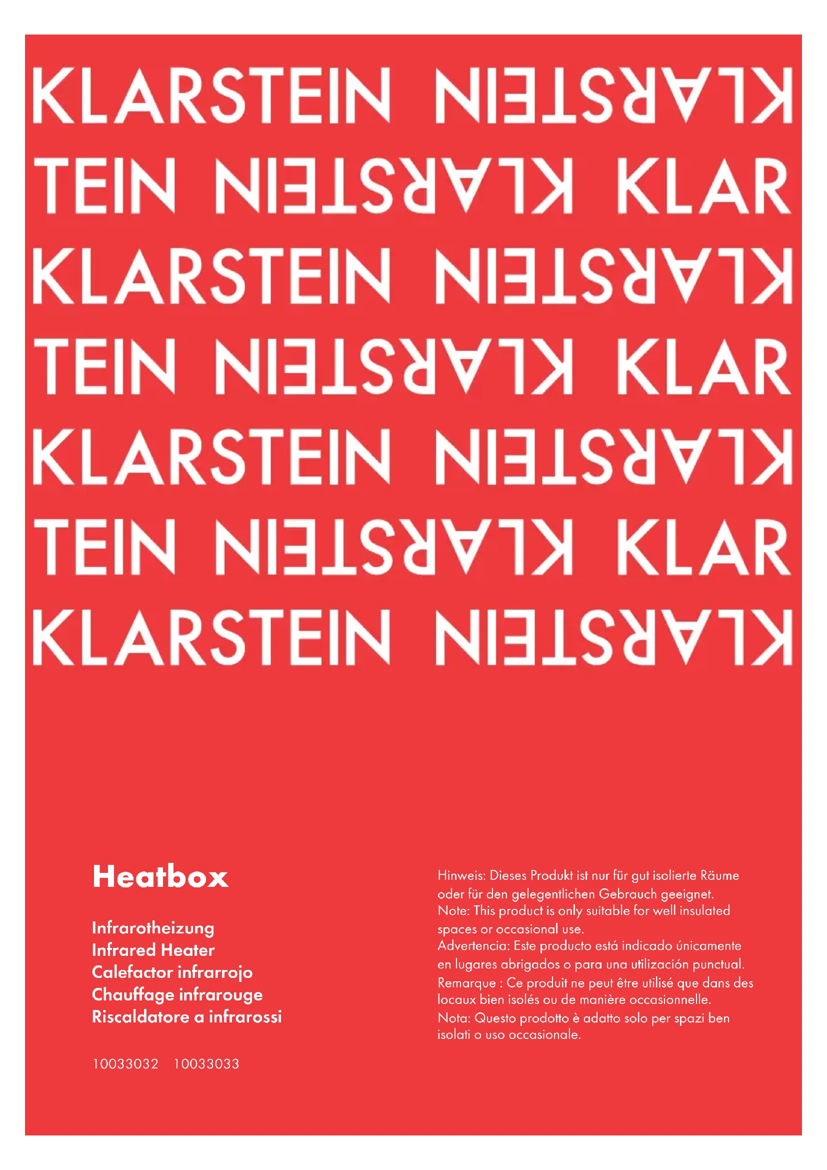 Retrouvez gratuitement la notice de l'appareil Heatbox 10033032 Klarstein au format PDF.
