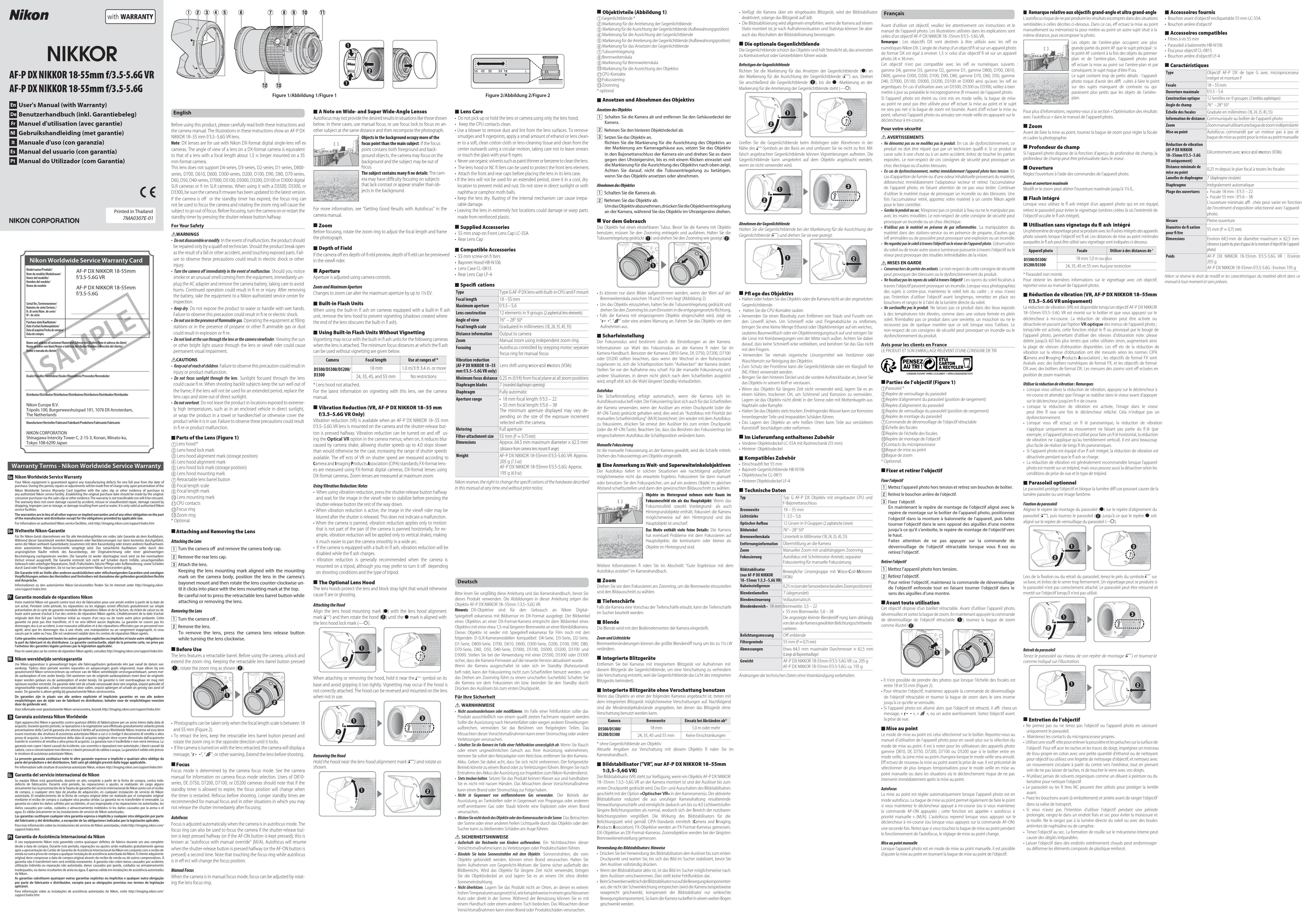 MODE D'EMPLOI Nikkor AFP DX 1855mm f3.55.6G NIKON