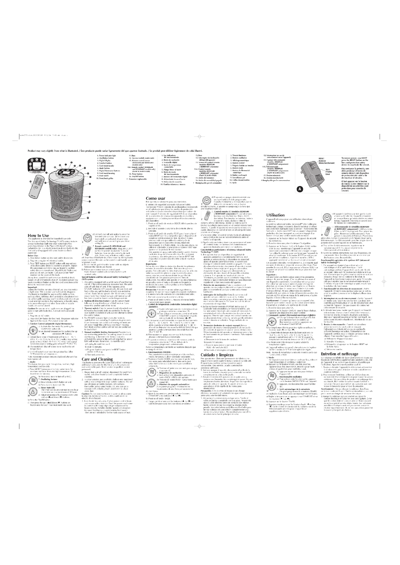 Pour empêcher un incendie possible, ne pas bloquer les entrées et sorties d’air de quelque façon que ce soit. Ne pas utiliser sur des surfaces molles, telles qu’un lit, où les ouvertures peuvent être bloquées. PLEASE READ AND SAVE THIS USE AND CARE BOOK. POR FAVOR LEA ESTE INSTRUCTIVO ANTES DE USAR EL PRODUCTO. VEUILLEZ LIRE ET CONSERVER CE GUIDE D’ENTRETIEN ET D’UTILISATION. Digital Control Heater Fan Calentador ventilador de control digital Ventilateur de radiateur avec commande numérique Models/Modelos/Modèles