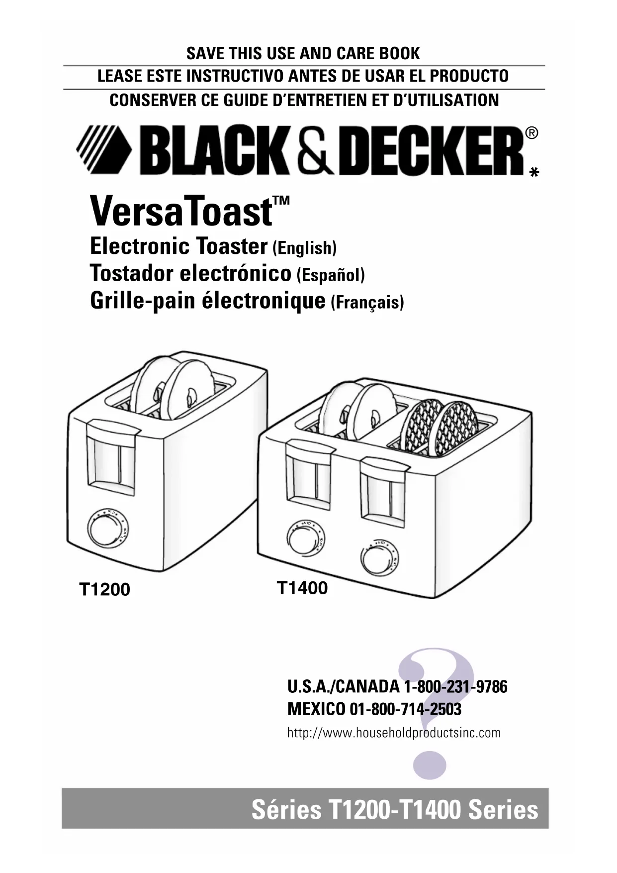 Retrouvez gratuitement la notice de l'appareil VersaToast T1400 BLACK & DECKER au format PDF.