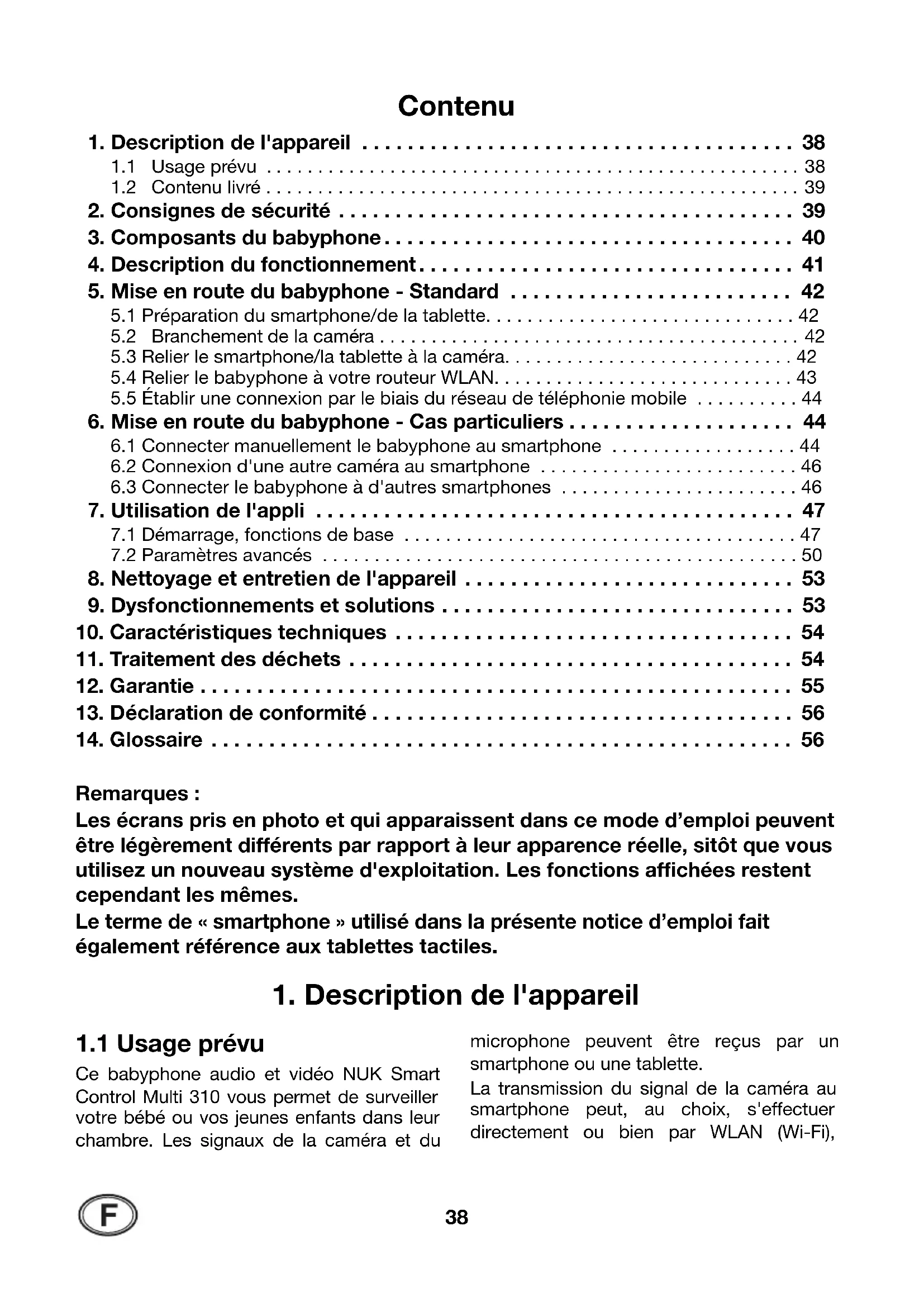 1. Description de l'appareil . . . . . . . . . . . . . . . . . . . . . . . . . . . . . . . . . . . . . . 38