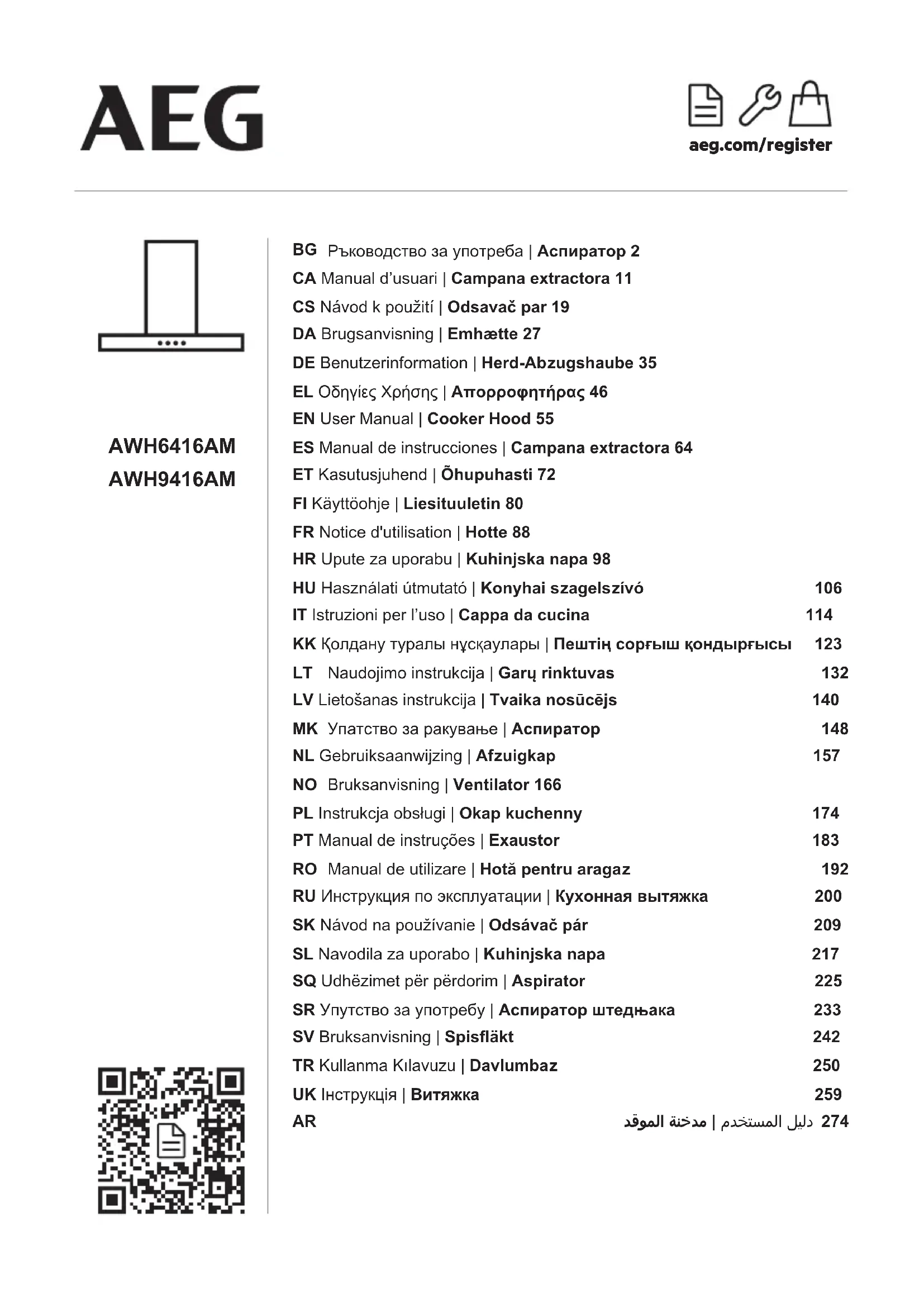 AWH9416AM - Hotte AEG - Notice d'utilisation et mode d'emploi gratuit