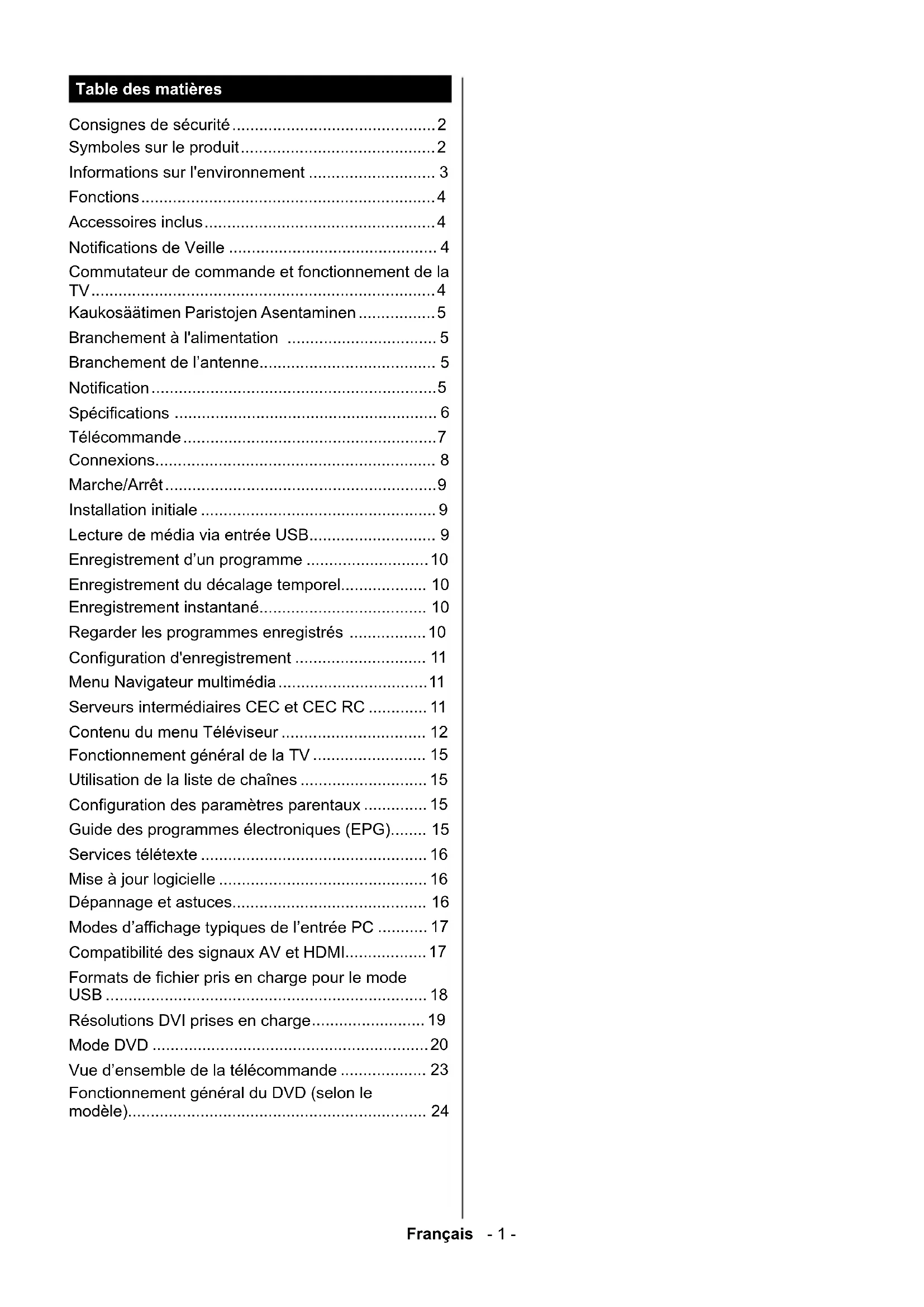 Fonctionnement général du DVD (selon le modèle).................................................................. 24Français - 2 - Consignes de sécurité