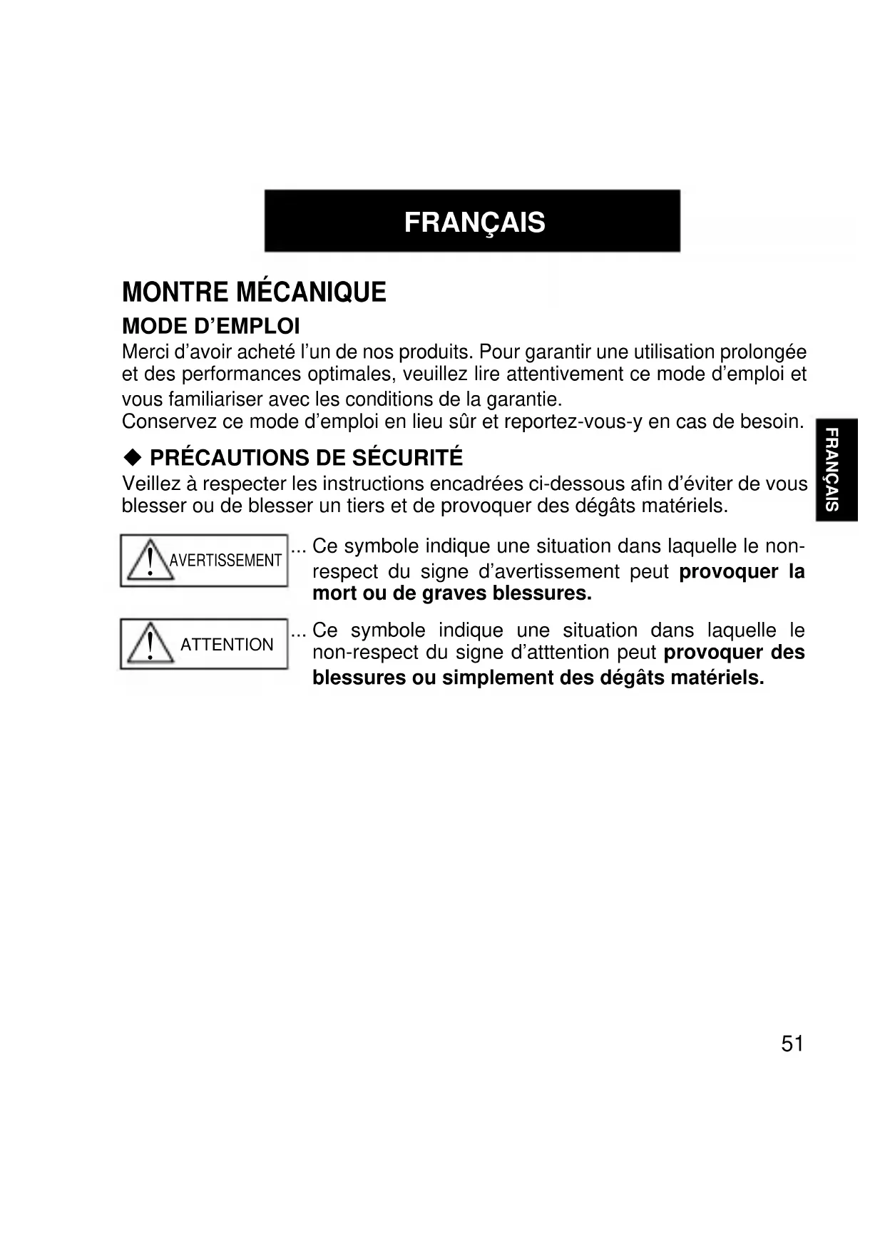 ATTENTION Ne tentez pas de démonter ou de modifier cette montre.
