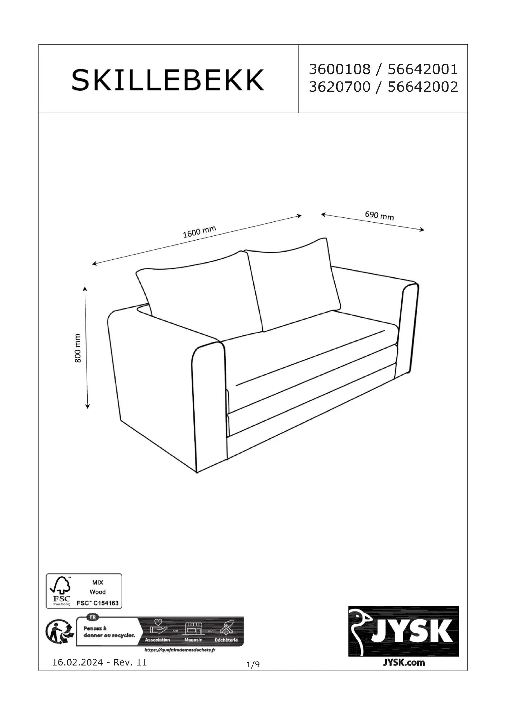 MODE D'EMPLOI Skillebekk JYSK