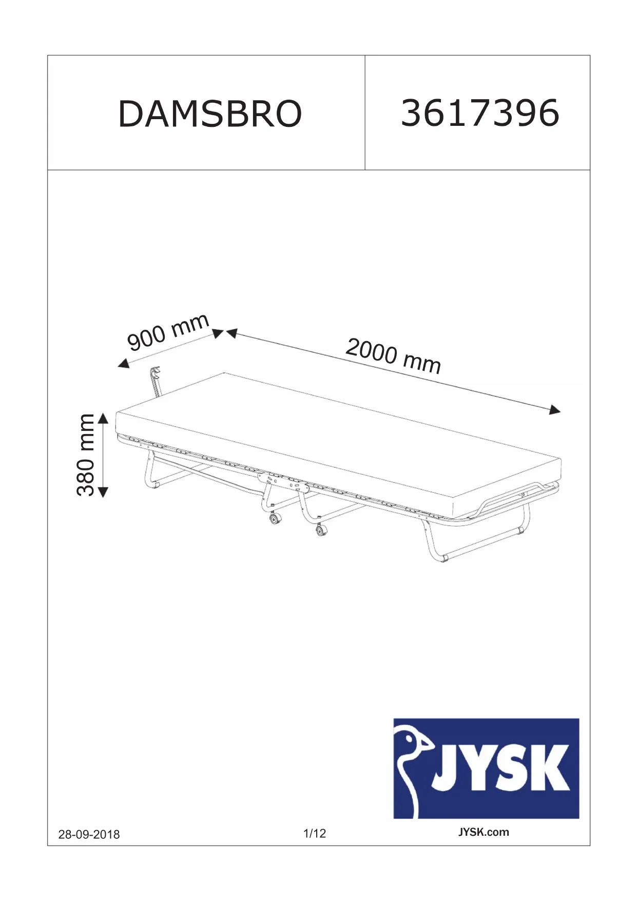 Damsbro - Lit pliant JYSK - Notice d'utilisation et mode d'emploi gratuit