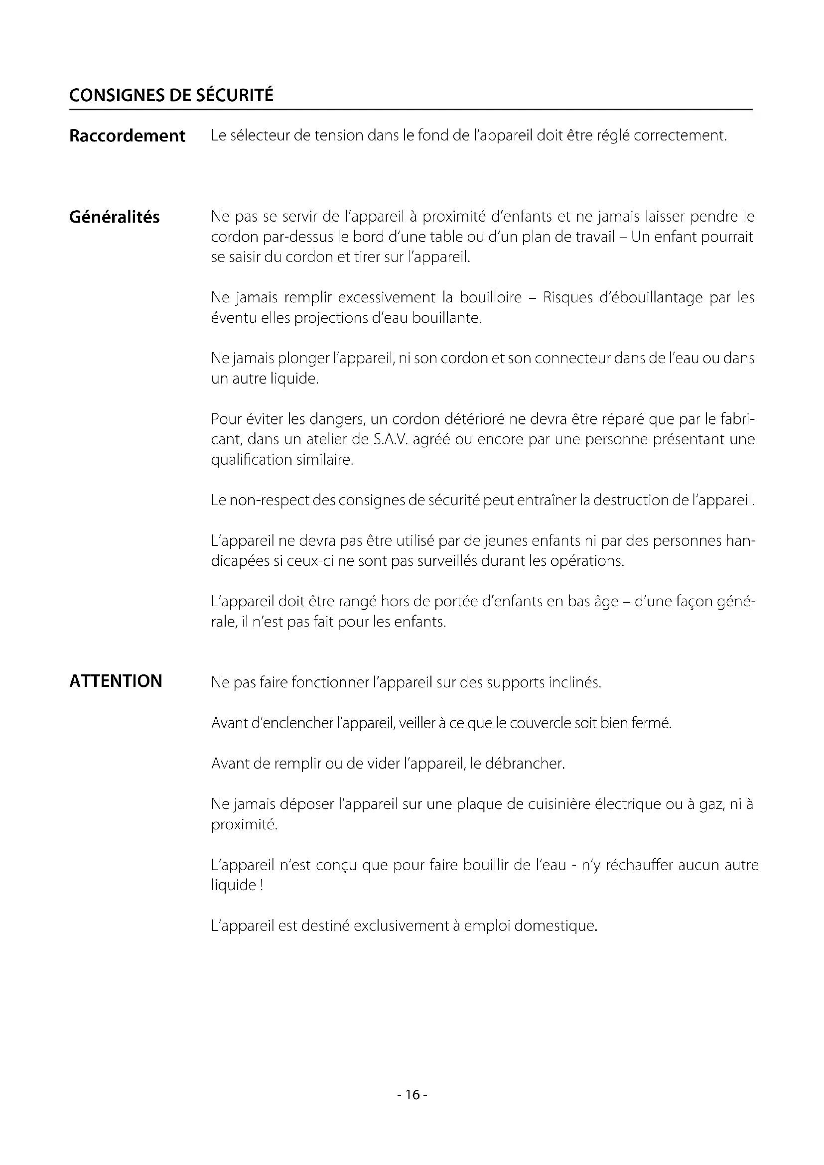 CONSIGNES DE SÉCURITÉ