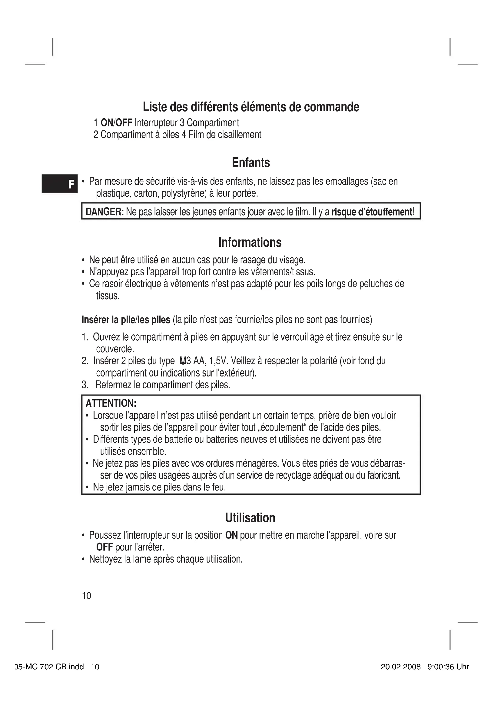- Nettoyez la lame après chaque utilisation. 05-MC 702 CB.indd 1005-MC 702 CB.indd 10 20.02.2008 9:00:36 Uhr20.02.2008 9:00:36 Uhr