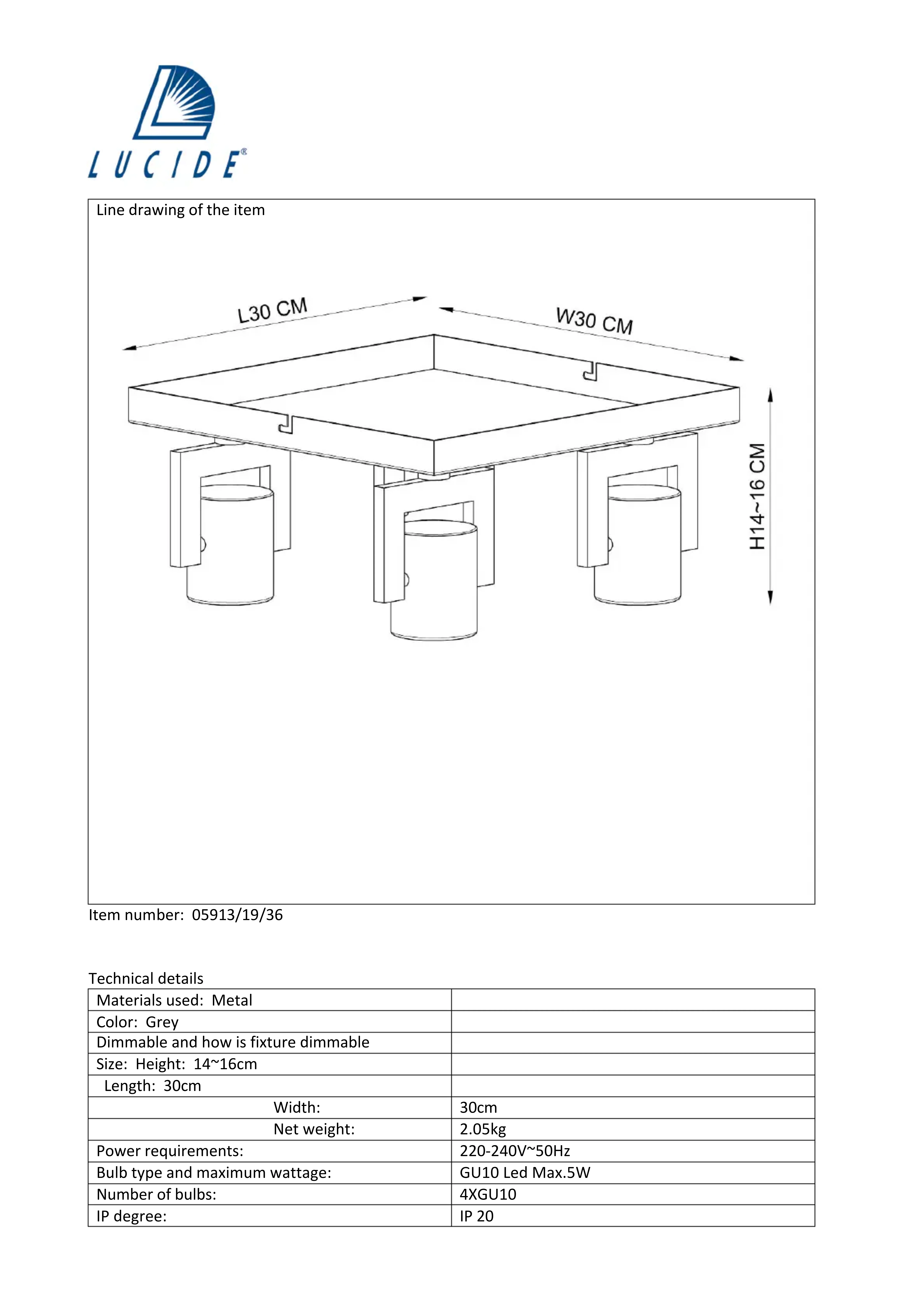 Pour nettoyer le Lucide Conni 059131936, éteignez d'abord l'alimentation. Utilisez un chiffon doux et sec pour essuyer la surface. Évitez les nettoyants abrasifs qui peuvent endommager la finition.