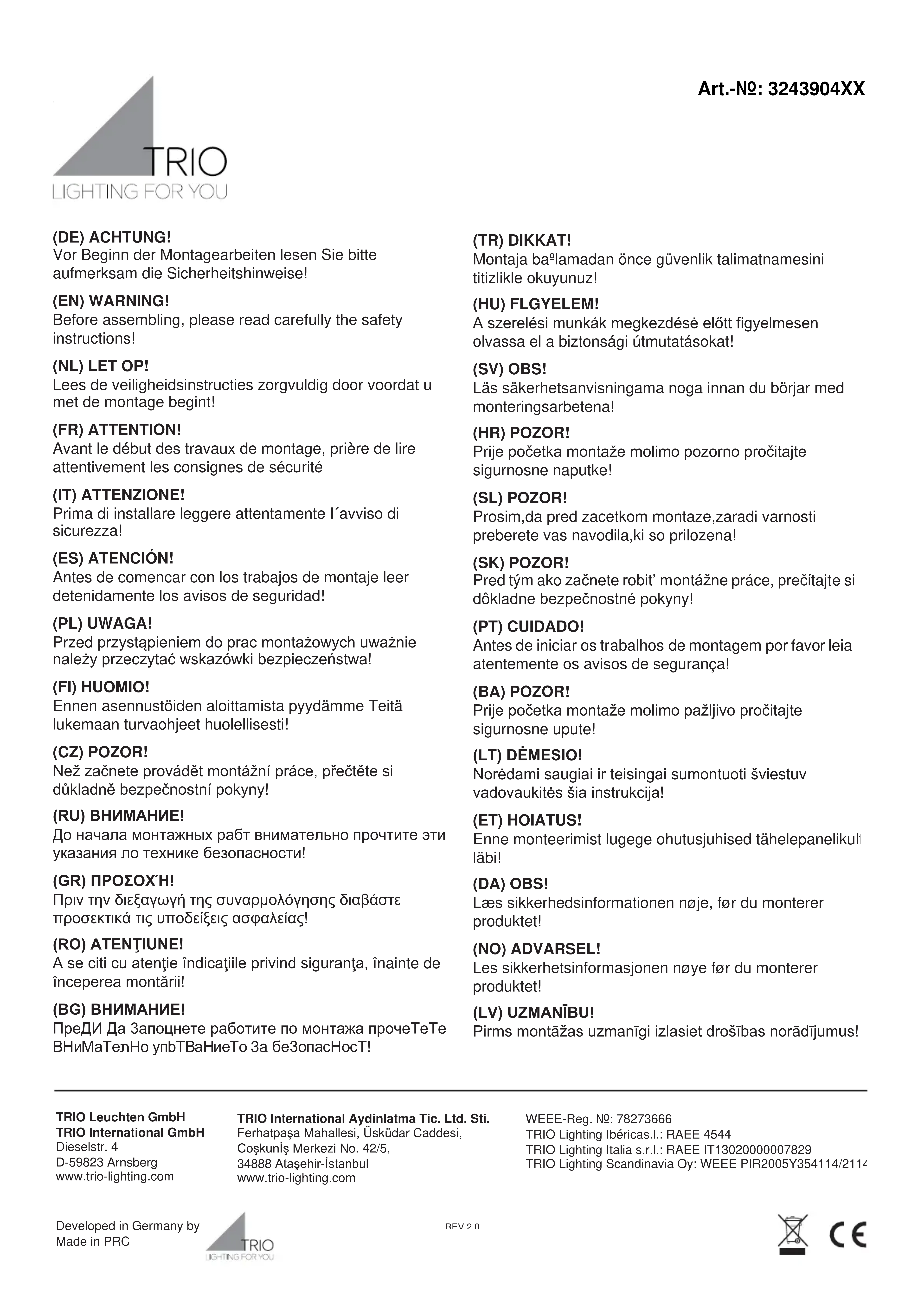 Retrouvez gratuitement la notice de l'appareil Senator 324390408 Trio Lighting au format PDF.