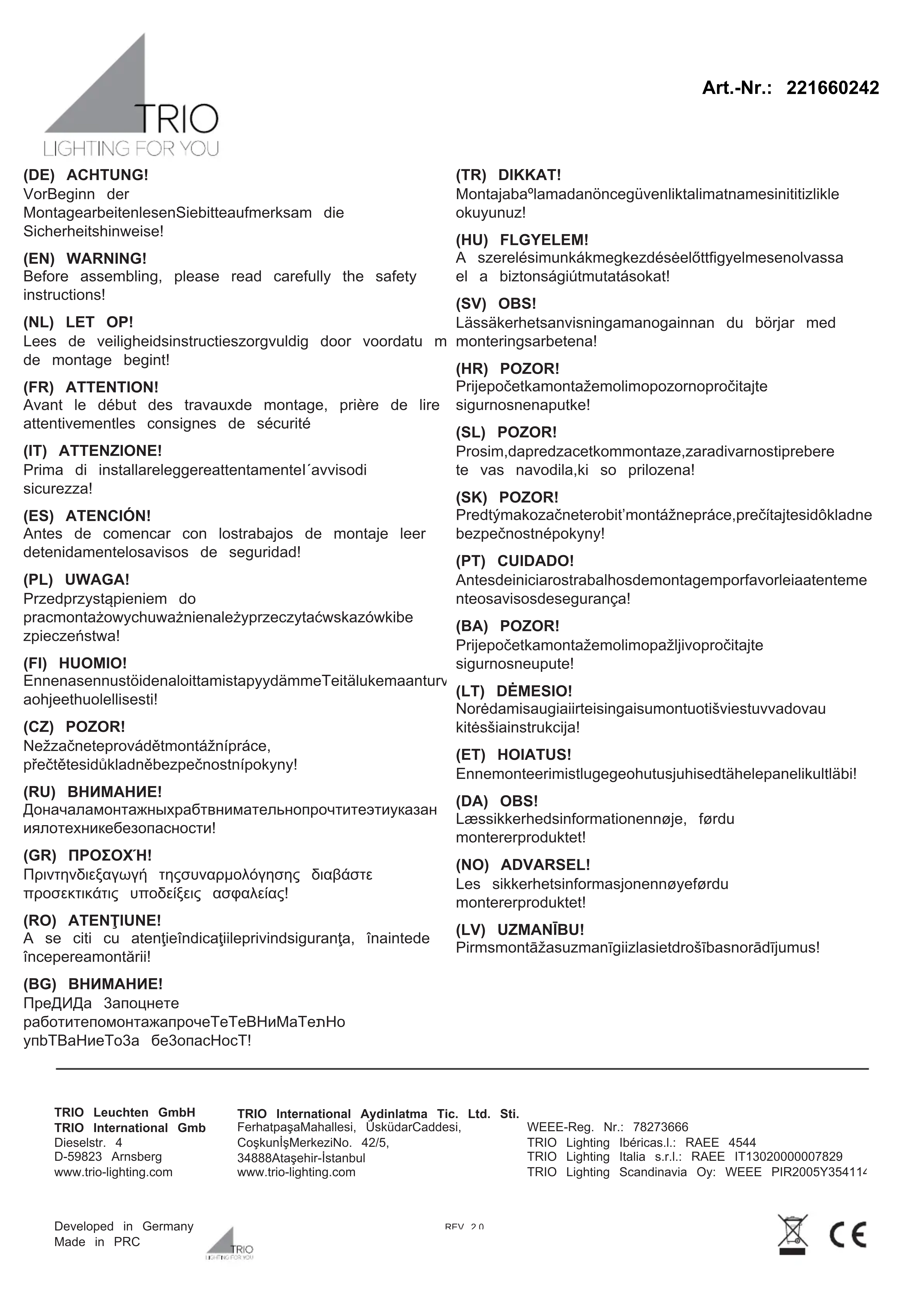 Retrouvez gratuitement la notice de l'appareil Rhine 221660242 Trio Lighting au format PDF.