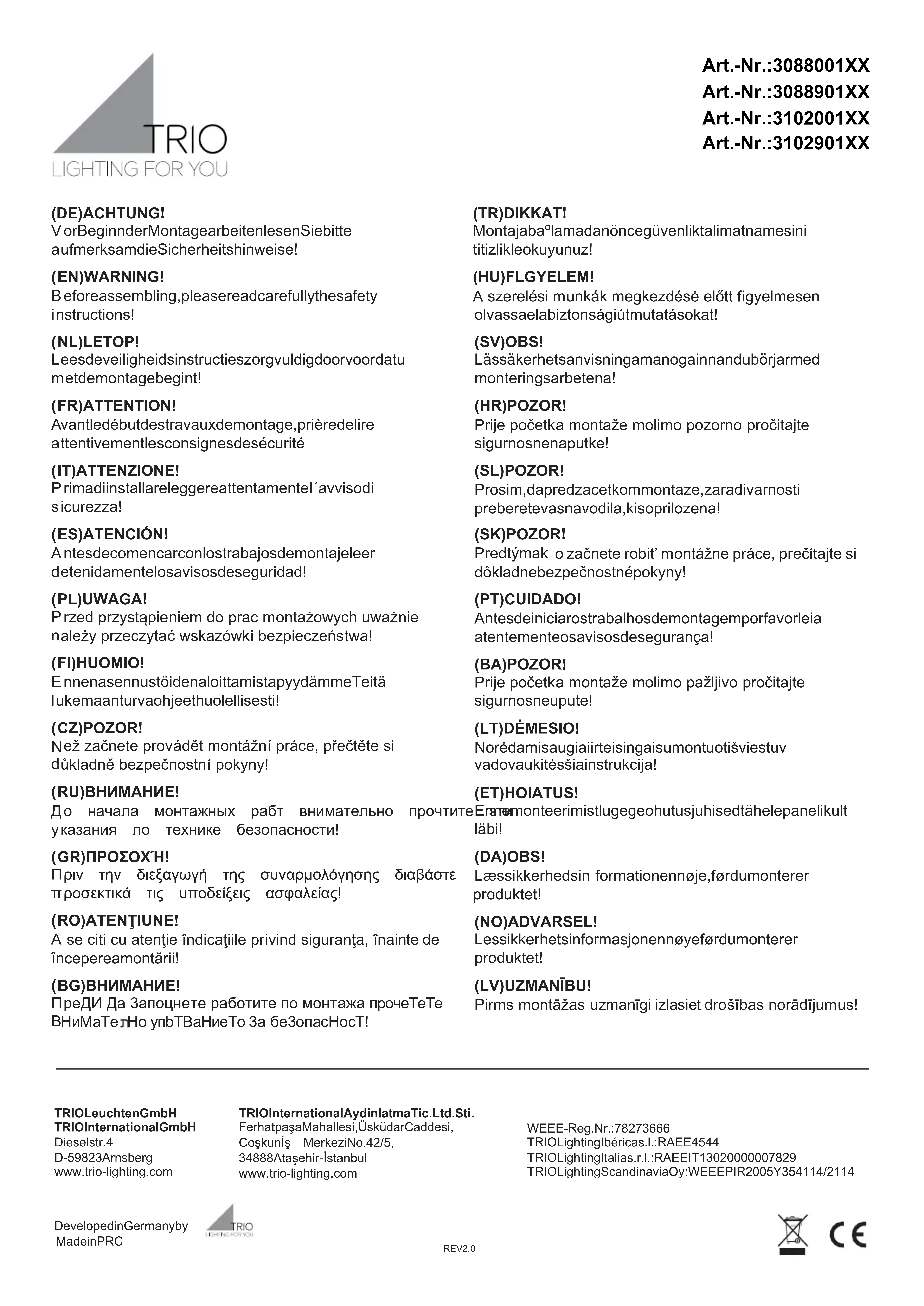 FOIRE AUX QUESTIONS - Porto 308800132 Trio Lighting