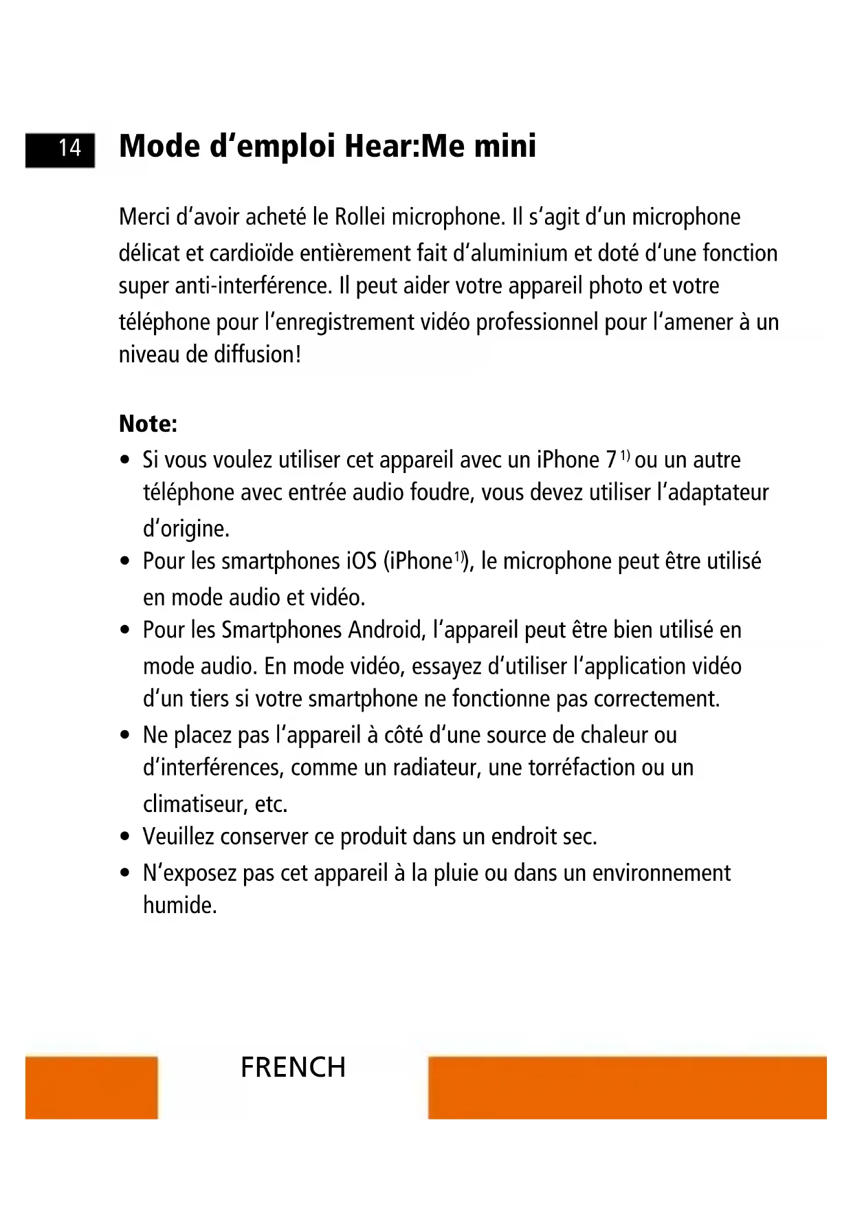 MODE D'EMPLOI Hear:Me Mini 28700 ROLLEI