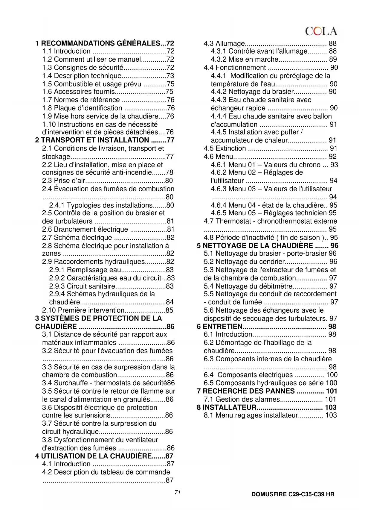Domusfire HR C39 - Chaudière Cola - Notice d'utilisation et mode d'emploi gratuit