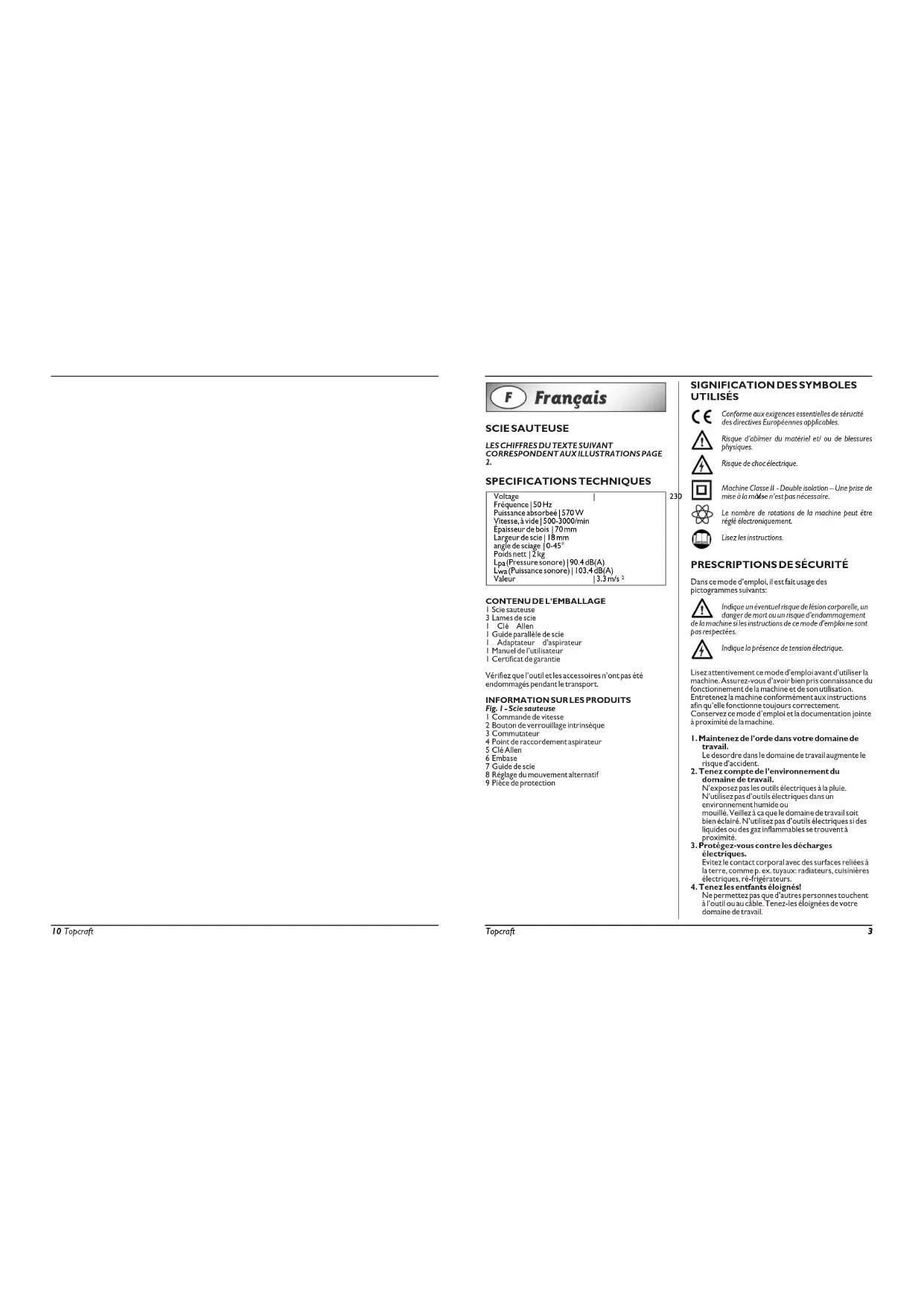 TSV650P - Scie TOP CRAFT - Notice d'utilisation et mode d'emploi gratuit