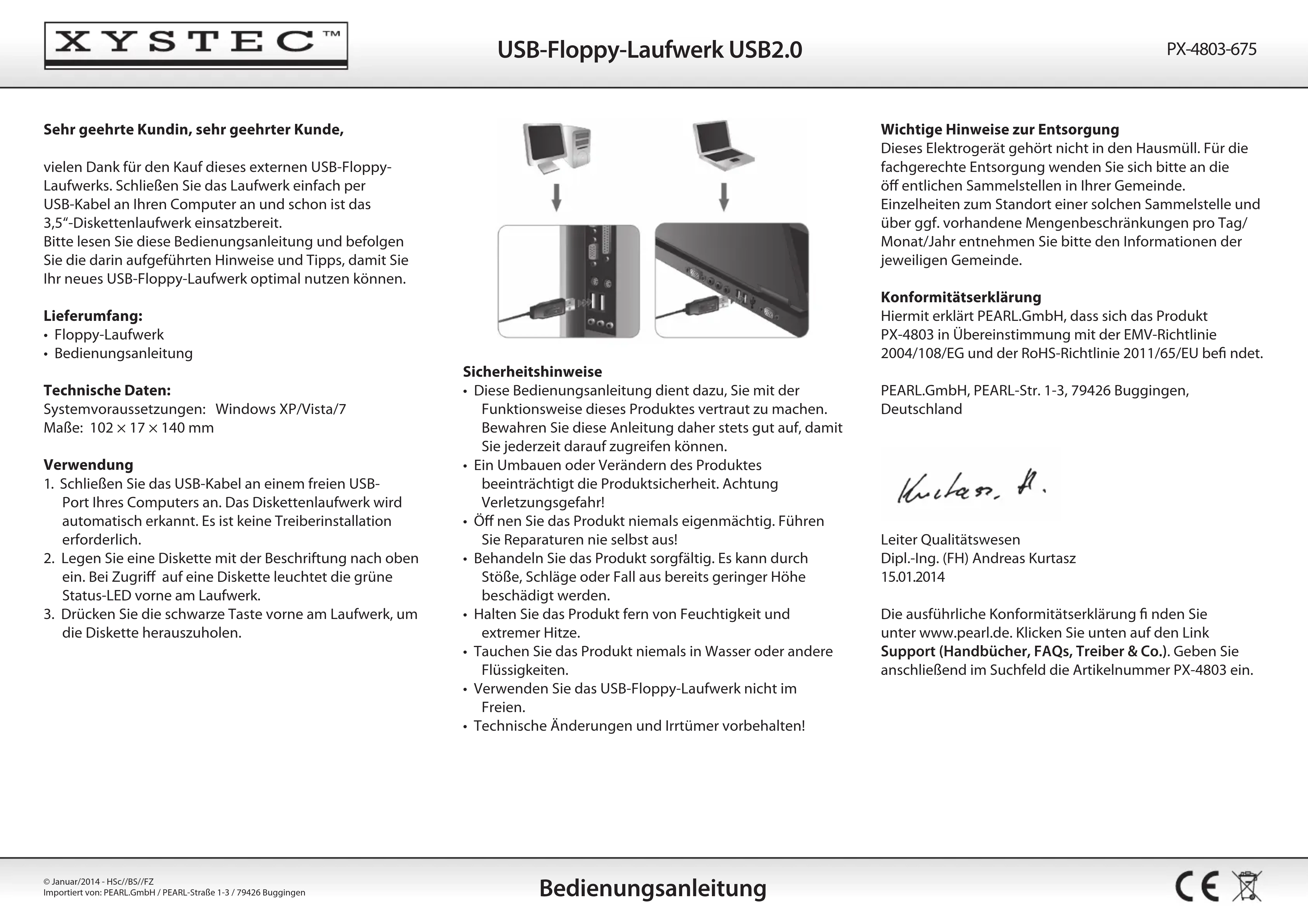 PX4803675 - Lecteur de disquettes XYSTEC - Notice d'utilisation et mode d'emploi gratuit