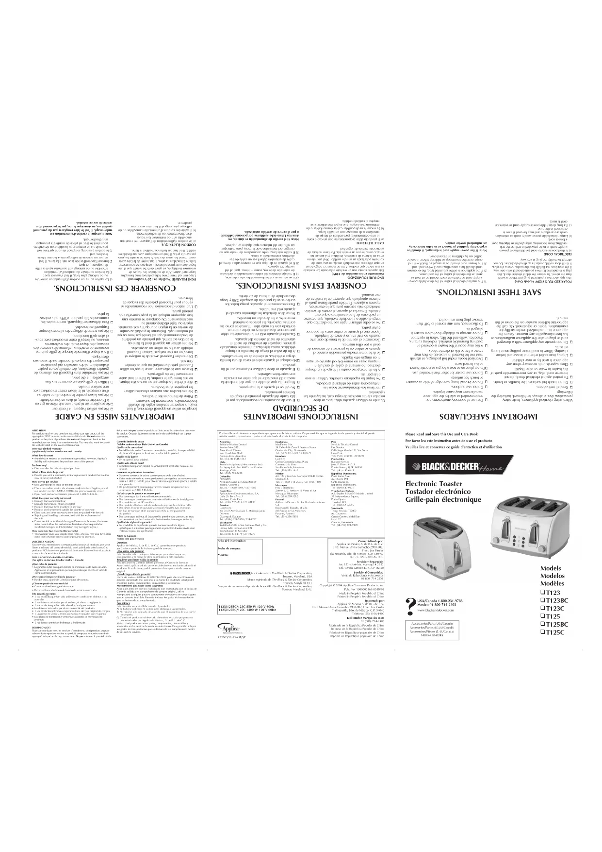 T123C - Grille-pain BLACK & DECKER - Notice d'utilisation et mode d'emploi gratuit